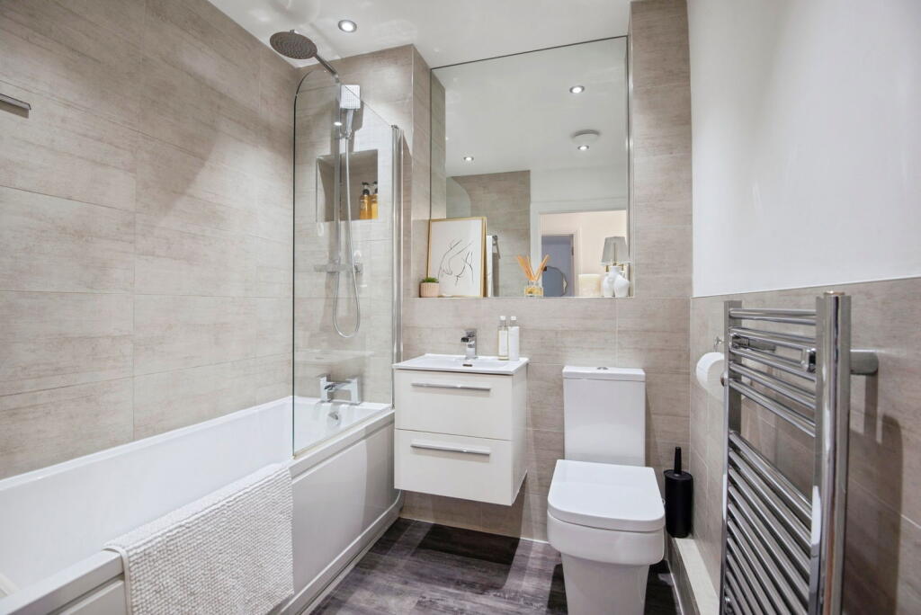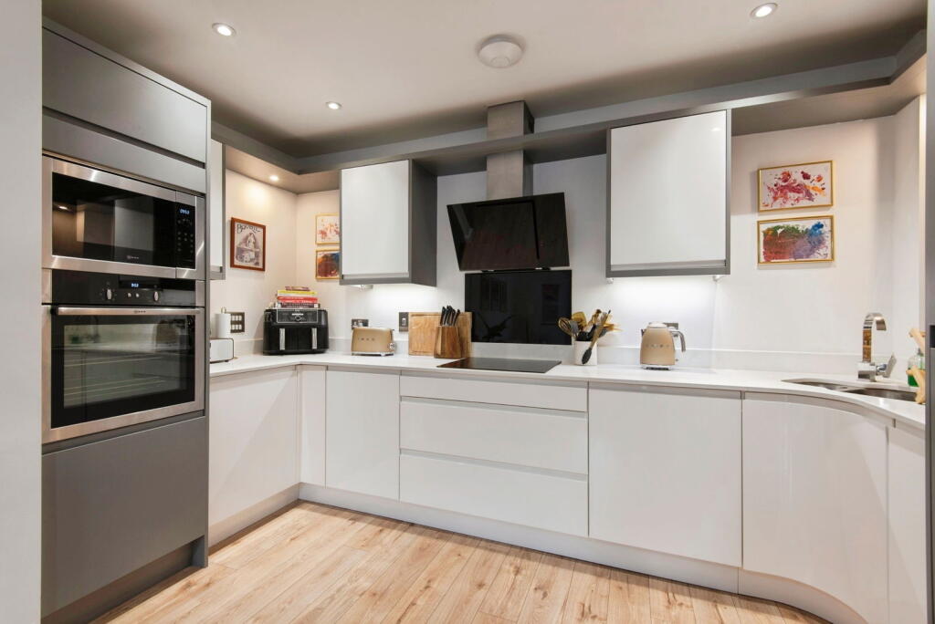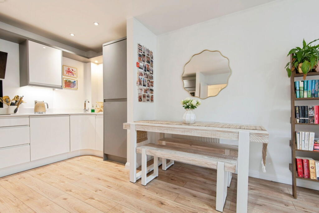 This is a modern one-bedroom apartment located in Hitchin, Hertfordshire. The property is well-presented and appears to be in excellent condition. It benefits from its proximity to Hitchin train station and several well-regarded schools. While it lacks a private garden, there are communal gardens available. The price is reasonable for the area, although some nearby apartments have sold for less.