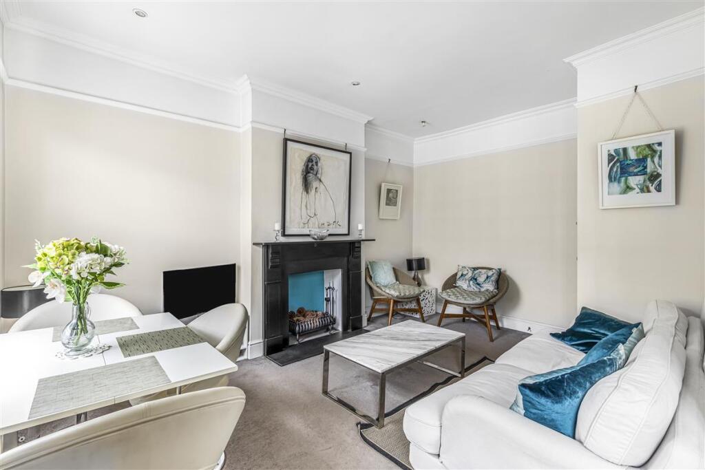 LONG LET. A charming and bright second floor flat in this period conversion in the heart of Chelsea. The property, which is offered furnished, comprises entrance hallway, reception room with ornamental fireplace, dining room/study off the living room, separate fully fitted kitchen, a quiet bedroom..