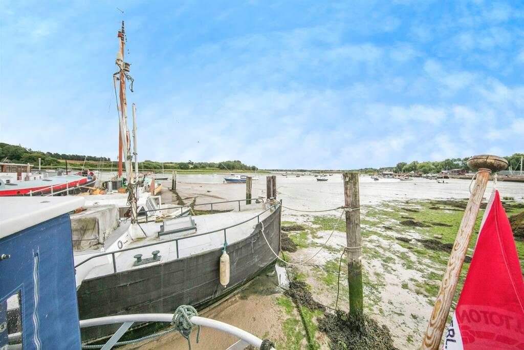 With prime mooring at the River Quay benefiting from fantastic views over the River Deben, this former Dutch fuel barge offers comfortable live aboard accommodation.