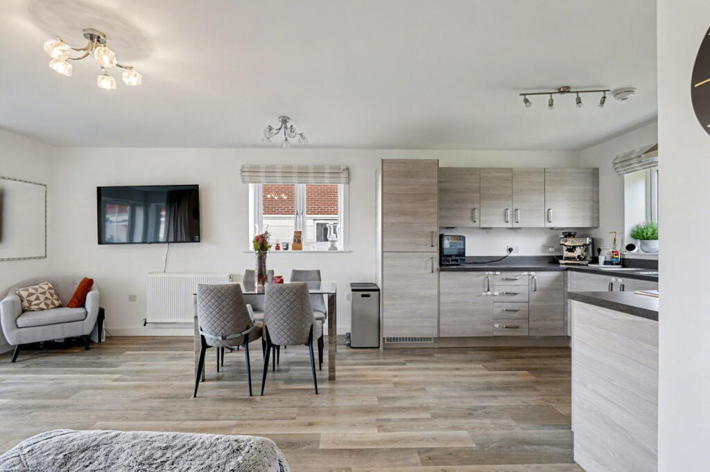 This is a modern, two-bedroom ground floor flat located in the Peters Village development in Wouldham, Rochester. The property boasts a spacious living area, modern kitchen and bathrooms, and communal green spaces. Its location offers convenient access to transportation links and nearby schools. The flat is in excellent condition and appears to be well-maintained, making it an attractive option for first-time buyers, small families, or those looking to downsize. The price seems fair given the property’s size, condition, and location within a modern development.