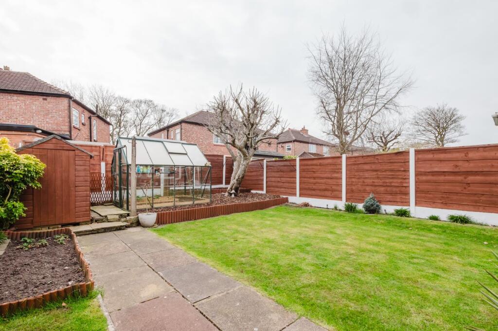 This property is a 3-bedroom semi-detached house located on Derwent Road in Flixton, Manchester. The property benefits from a modern and well-maintained interior, with recent renovations evident in the kitchen and bathroom. A key feature is the conservatory extension, which provides additional living space and access to the garden. The garden itself is of a reasonable size and includes a decked area, greenhouse, and shed, offering ample outdoor space. The location is convenient, with nearby transportation links and well-regarded schools. While the average house price in the area is significantly higher, comparable properties on Derwent Road and nearby streets suggest the list price is relatively competitive for a property of this size and condition.
