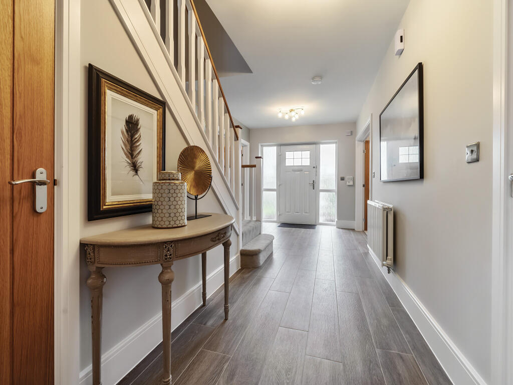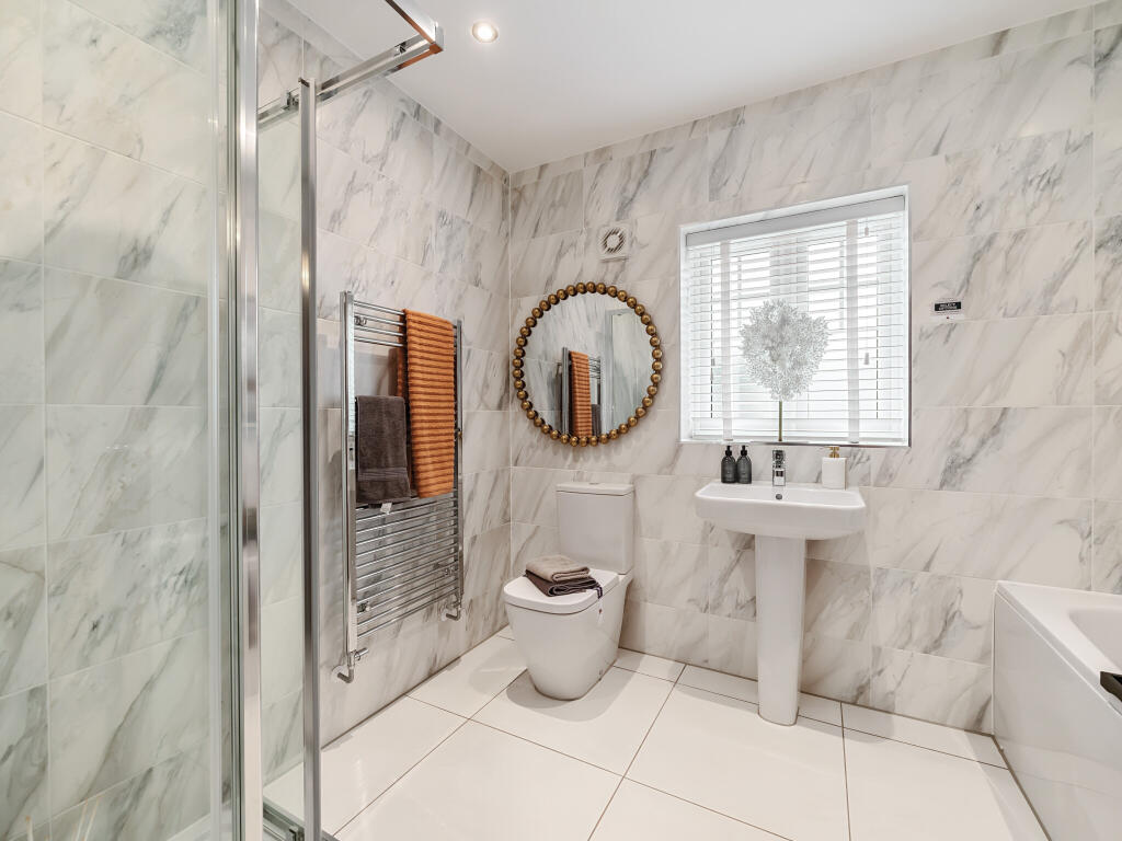 The Portland is a five-bedroom, three-bathroom home featuring an impressive kitchen/dining/family room with bi-fold doors. Front-aspect dining and living rooms, a utility with garden access, WC, and storage add practicality. Upstairs includes an en suite, Jack & Jill en suite and family bathroom.
