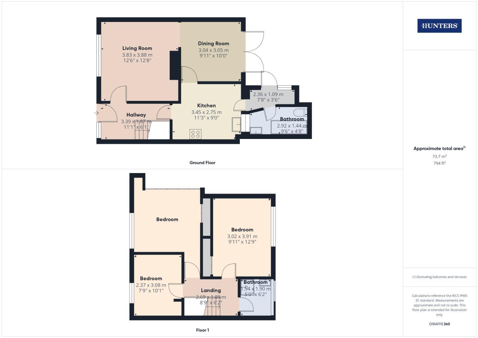 A well appointed and elegantly proportioned three bedroom home, offering approximately 794 sq. ft. (73.7 sq. m) of refined living space across two floors. Upon entering the property, you are welcomed by a bright and airy hallway leading into a generously sized living room ideal for famil...