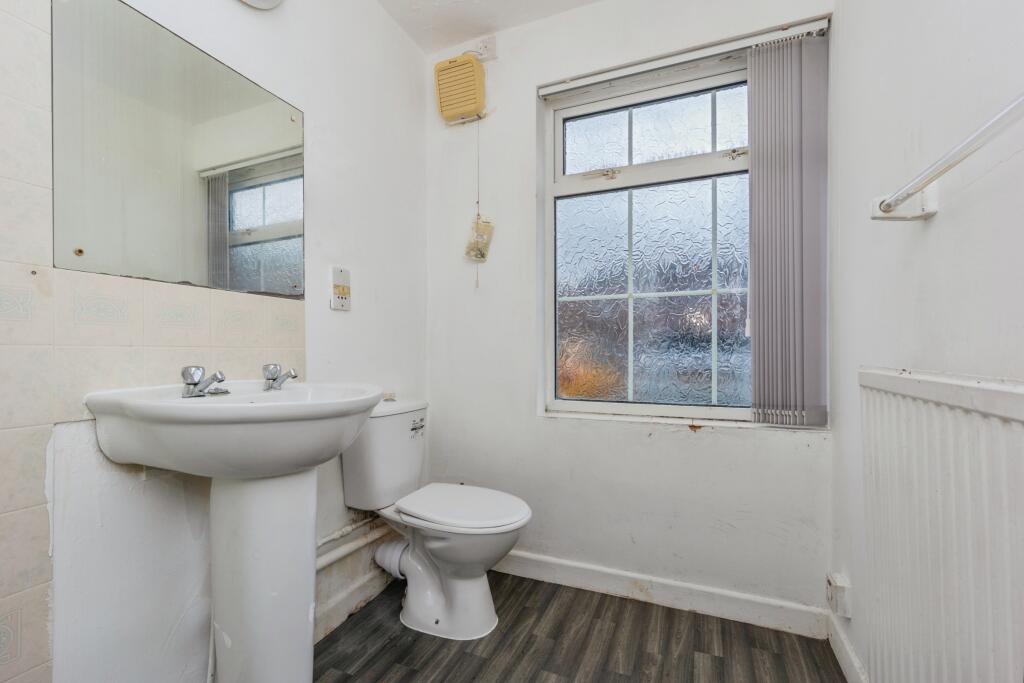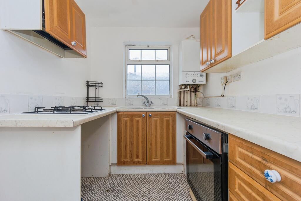 This is a one-bedroom ground floor flat in Denton, Manchester. The property is in need of some renovation, but it is located in a convenient location and is priced below the average for the area. The property is located near schools and transportation, and it has a small garden. The bathroom and kitchen look dated, and the walls could use a fresh coat of paint. Overall, this property has potential, especially for first-time buyers or investors looking for a project.