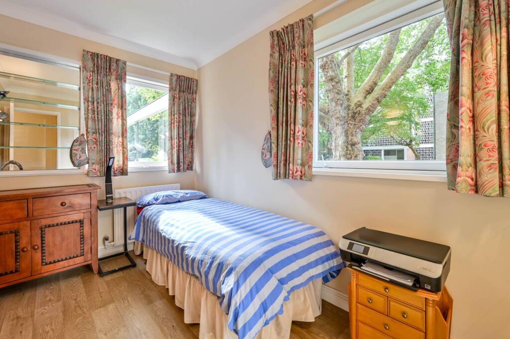 SHORT LET. A delightful two-bedroom ground floor flat enjoying a generous reception room with direct access to the communal garden, well appointed separate kitchen, 2 double bedrooms with fitted wardrobes and off street parking.