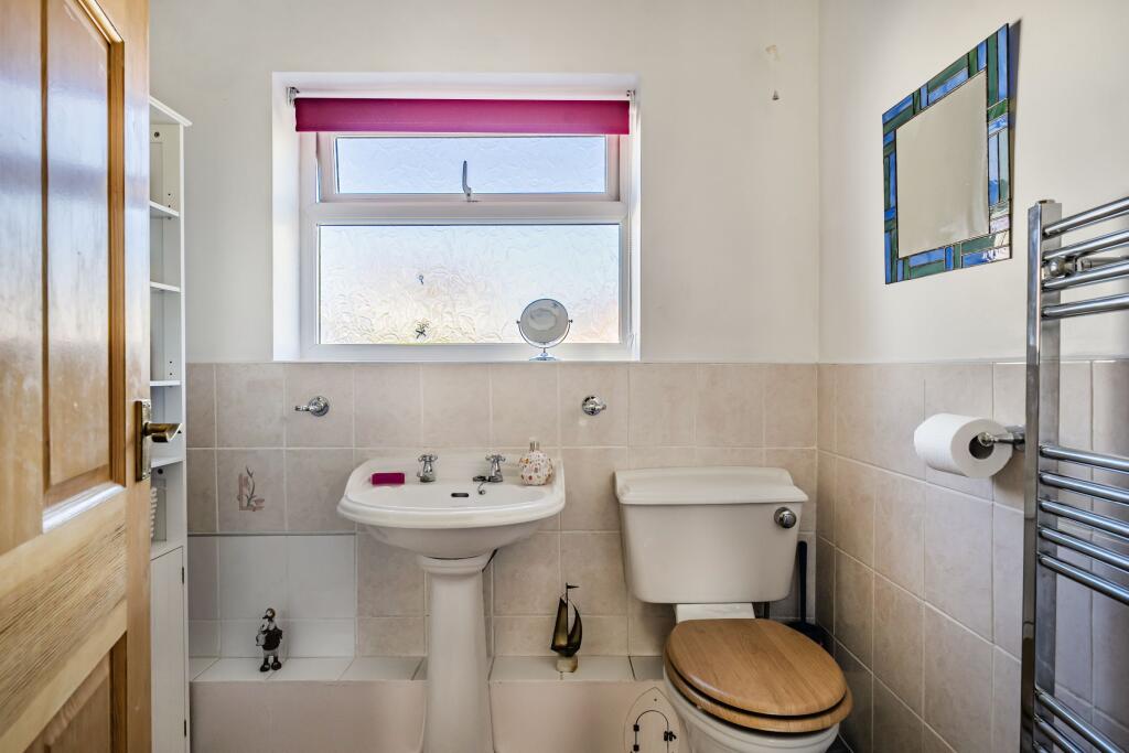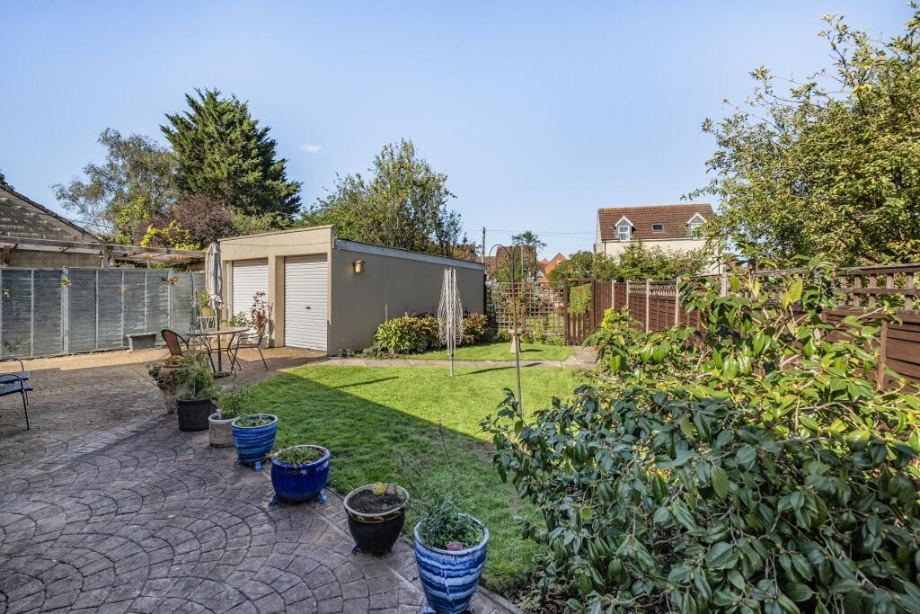 This is a two-bedroom bungalow in Hilperton, Wiltshire. The property is in good condition, although some may consider it to be a little dated. It features a good-sized garden with a patio area, greenhouse and a double garage. The property is located close to local schools and amenities. Trowbridge train station is 3.12KM away. The property is listed for £350,000, which is below the average price for the area.
