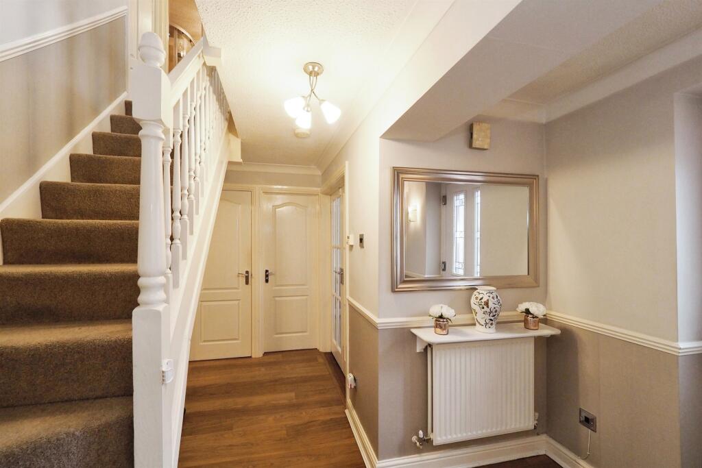 A well-presented four bedroom detached home in a quiet cul-de-sac location boasting ample off-road parking, detached double garage and fully enclosed rear garden. Comprising: Entrance hall, lounge, study/snug, dining room, cloaks/ W.C, kitchen, utility, four bedrooms, en suite & family bathroom.
