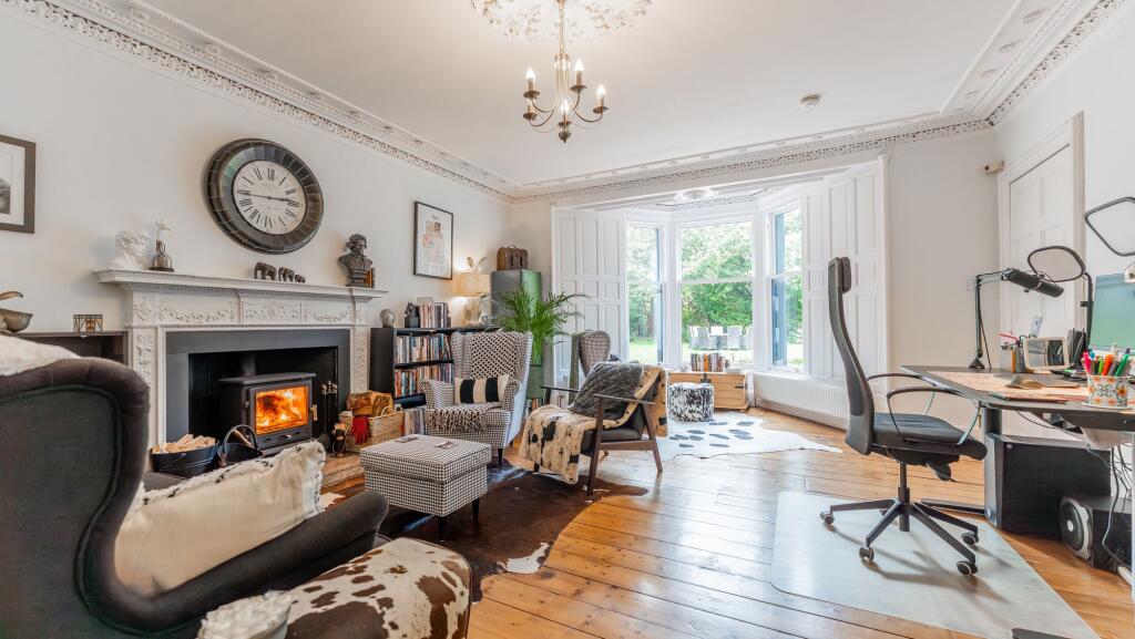 Dullatur House is a substantial detached property located in Dullatur, North Lanarkshire. The property benefits from a large garden, and appears to be in excellent condition, having undergone significant modernisation while retaining many period features. The location is relatively peaceful, yet conveniently located with access to nearby rail links at Croy, Greenfaulds and Cumbernauld. The property’s list price of £875,000 is significantly higher than the average house price in the area (£517,143). However, given its size (7 bedrooms, 5 bathrooms), the extensive grounds, and its apparent high-quality renovation, the price may be justifiable within the context of the local market for similar high-end properties. More information regarding the square footage would be needed to make a more definitive assessment of value per square foot. The property displays many features indicative of a period property, including high ceilings, ornate cornicing, and traditional window designs. However, the modern kitchen and bathrooms demonstrate a high level of recent renovation. The property also benefits from a conservatory and ample land. Based on the images provided, the property is in excellent condition and appears well-maintained. The interior design is modern and stylish. The extensive grounds are a significant asset, contributing to the overall appeal and value of the property. The proximity to rail links enhances its accessibility.