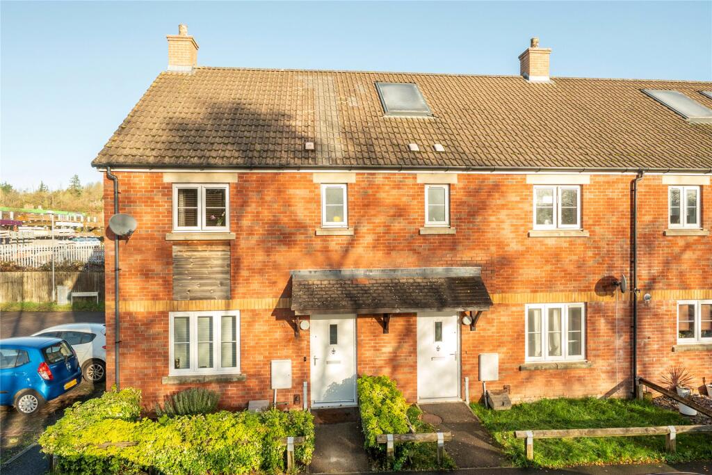 This is a three-bedroom end-of-terrace house in Crediton, Devon. The property appears to be in good condition, with a modern kitchen and bathroom. It has a garden, although it is mostly paved. The property is located within a reasonable distance of local amenities, including a train station and a primary school. The listing price seems competitive for the area. The property is marketed by Homewise.