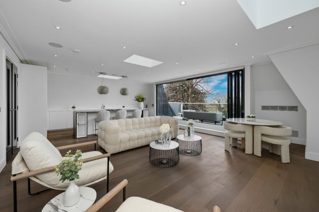 This stunning penthouse apartment is located in Esher, Surrey, a highly desirable area known for its excellent schools, transport links, and proximity to open green spaces. The property itself boasts a modern, high-specification finish throughout, evident in the high-quality images provided. The open-plan living space is bright and airy, with large windows offering impressive views. The apartment benefits from a large private terrace, ideal for outdoor entertaining. The kitchen is contemporary and well-equipped, and the bedrooms are spacious and well-appointed. The lack of plot size is expected given the penthouse nature of the property. The price per sqft is lower than the area average, suggesting that the list price of £995,000 may represent good value for money, particularly considering the condition and location. The close proximity to Esher train station provides convenient access to London and other parts of the UK. Several highly-rated schools are within a reasonable distance, making this an attractive option for families.