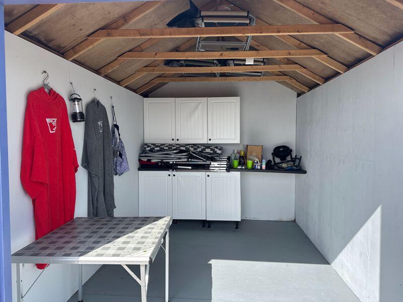 The property is a beach hut located on the seafront in Hayling Island. The images show the hut to be in good condition, well-maintained, and recently decorated. It includes fitted units and a worktop. The location is excellent, directly on the beach, and within walking distance of local amenities. However, the lack of bedrooms and bathrooms means it is unsuitable as a primary residence and is more likely to be used as a holiday or recreational space. Given the high average house prices in the area and the unique nature of this property, the list price of £17,000 appears low. However, without knowing the size of the hut, a definitive price assessment is not possible. The limited plot size is consistent with a beach hut.