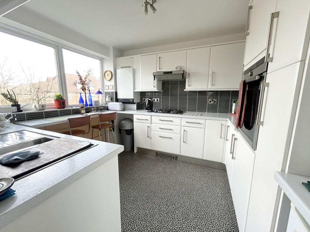 A delightful and extremely spacious second floor apartment offered for sale with no upward chain and benefiting from two bedrooms, superb L shaped lounge diner with superb views from balcony, fitted kitchen, guest WC, four piece bathroom, two garages and well manicured communal gardens