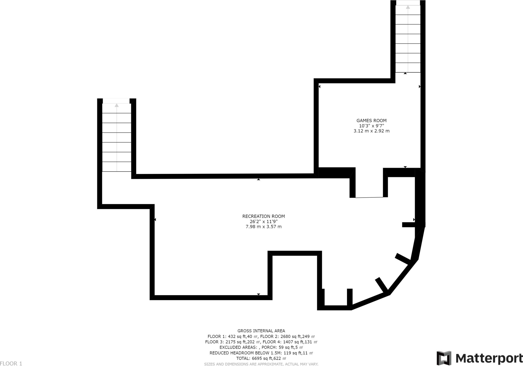 The property includes a garden, visible in the aerial shots. The size isn’t specified, but there’s sufficient outdoor space for a house of this size.