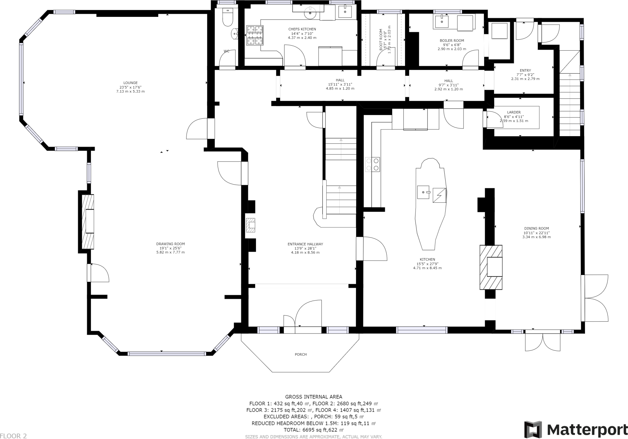 Based on the images, the property appears to be a large detached house in good condition. It seems well-maintained and recently renovated or refurbished. The interior is presented to a high standard, with modern fixtures and fittings. There is evidence of significant investment in the property’s upkeep.