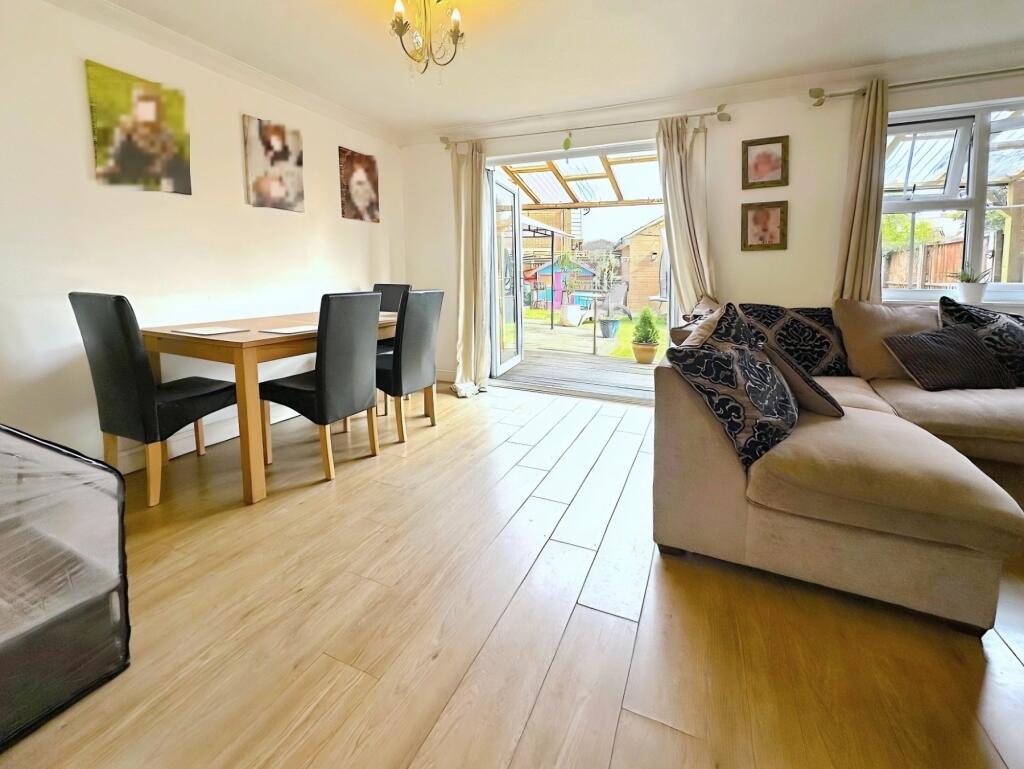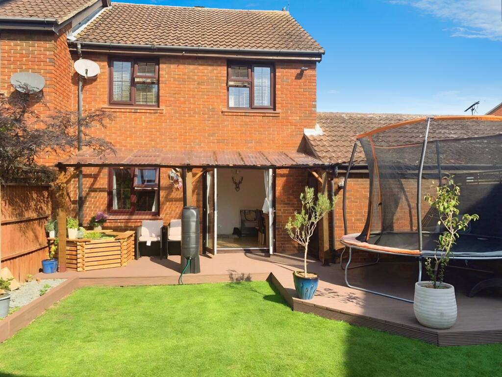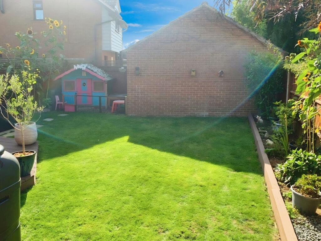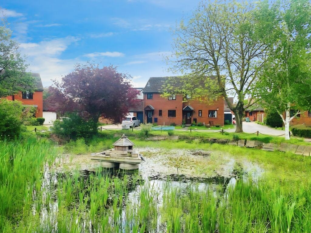 This neutrally decorated three-bedroom semi-detached house features a spacious reception room with garden views, a well-appointed kitchen, modern bathroom, garage, and parking, all set in a tranquil location overlooking a duck pond and close to local amenities—making it ideal for families.