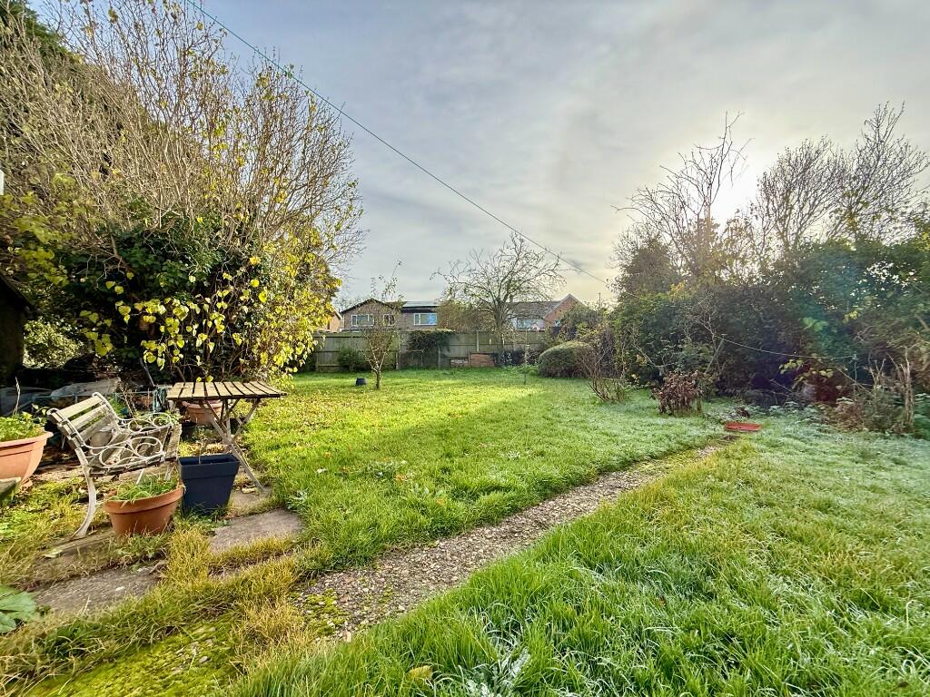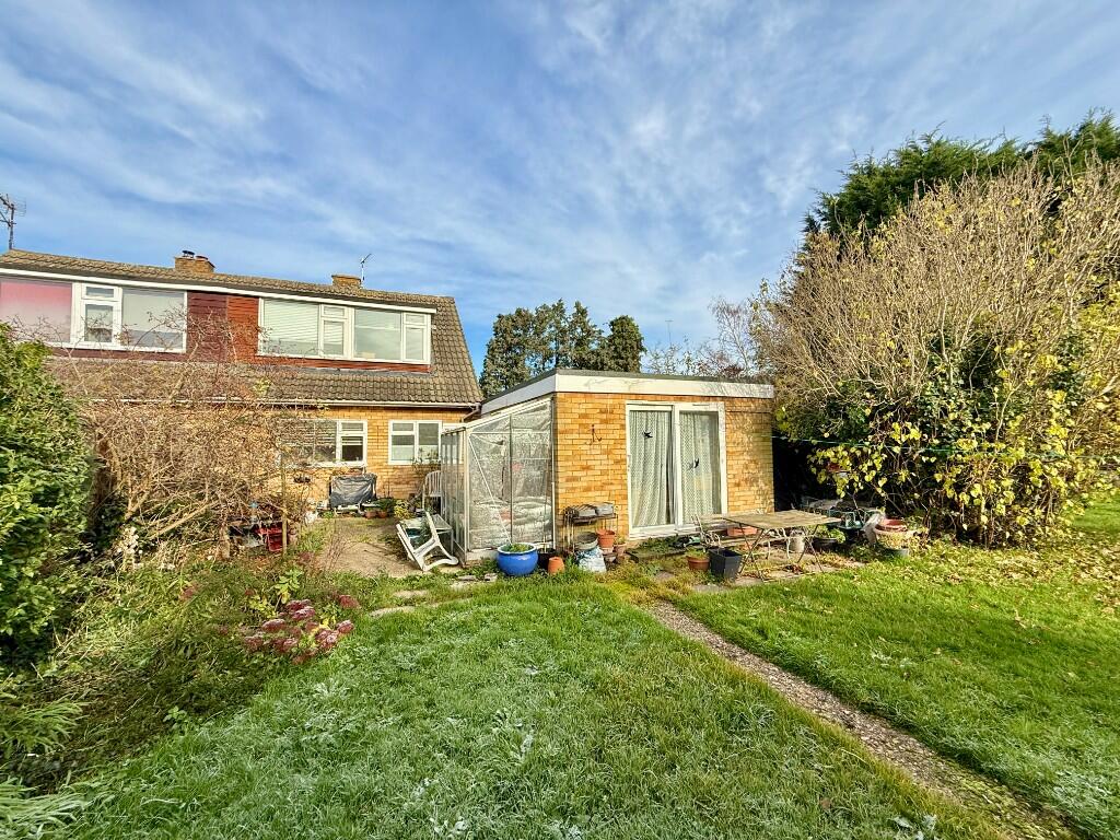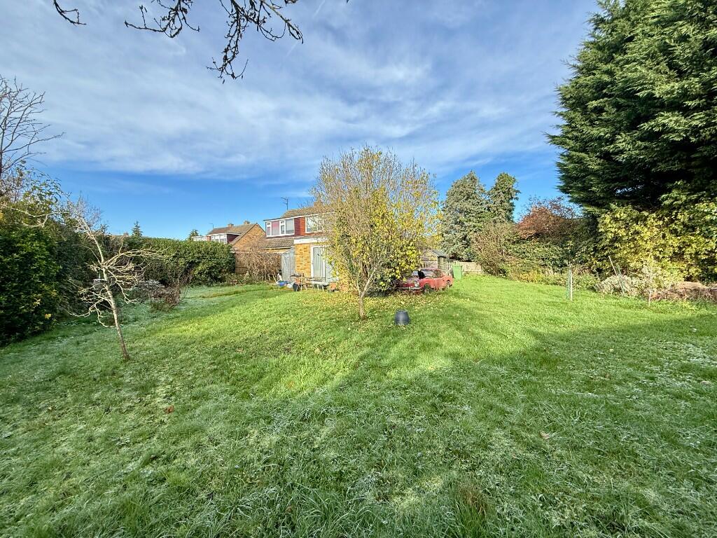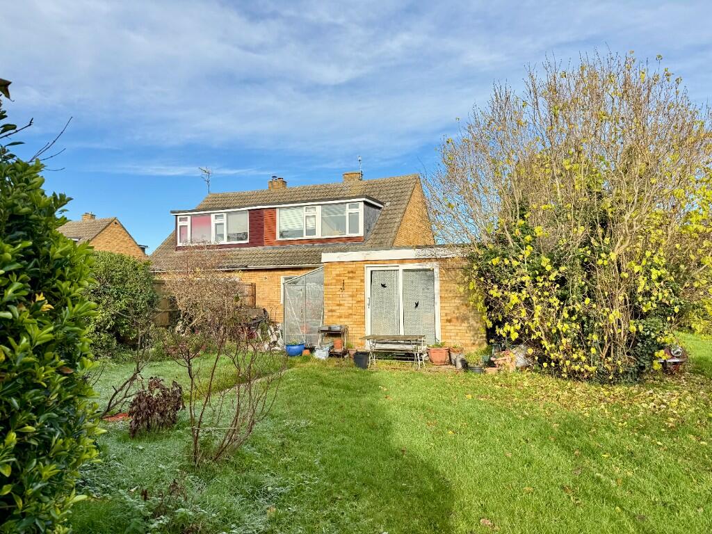 Sat on a large south facing corner plot this extended chalet bungalow requires refubishment. It has a kitchen/dining room, a sitting room, WC, bathroom, an additional garden room with cloakroom and three bedrooms upstairs. There are gardens to the front, side & rear, a driveway and garage.