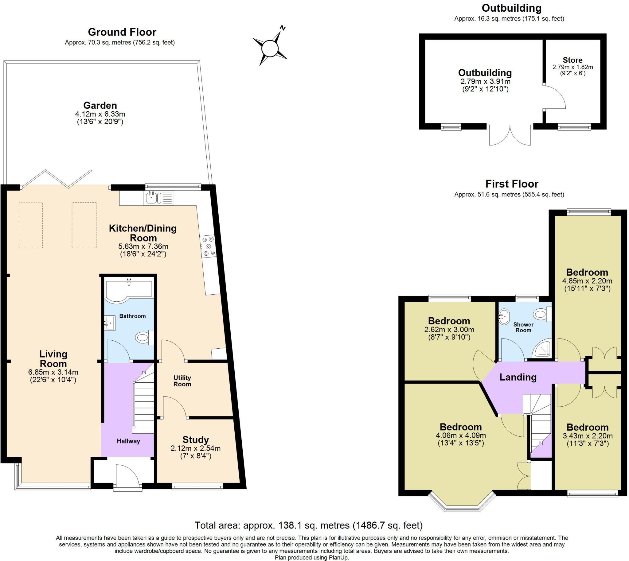 The property includes a substantial rear garden, featuring patio areas, lawn, and a shed. The garden is well-maintained and offers ample outdoor space.