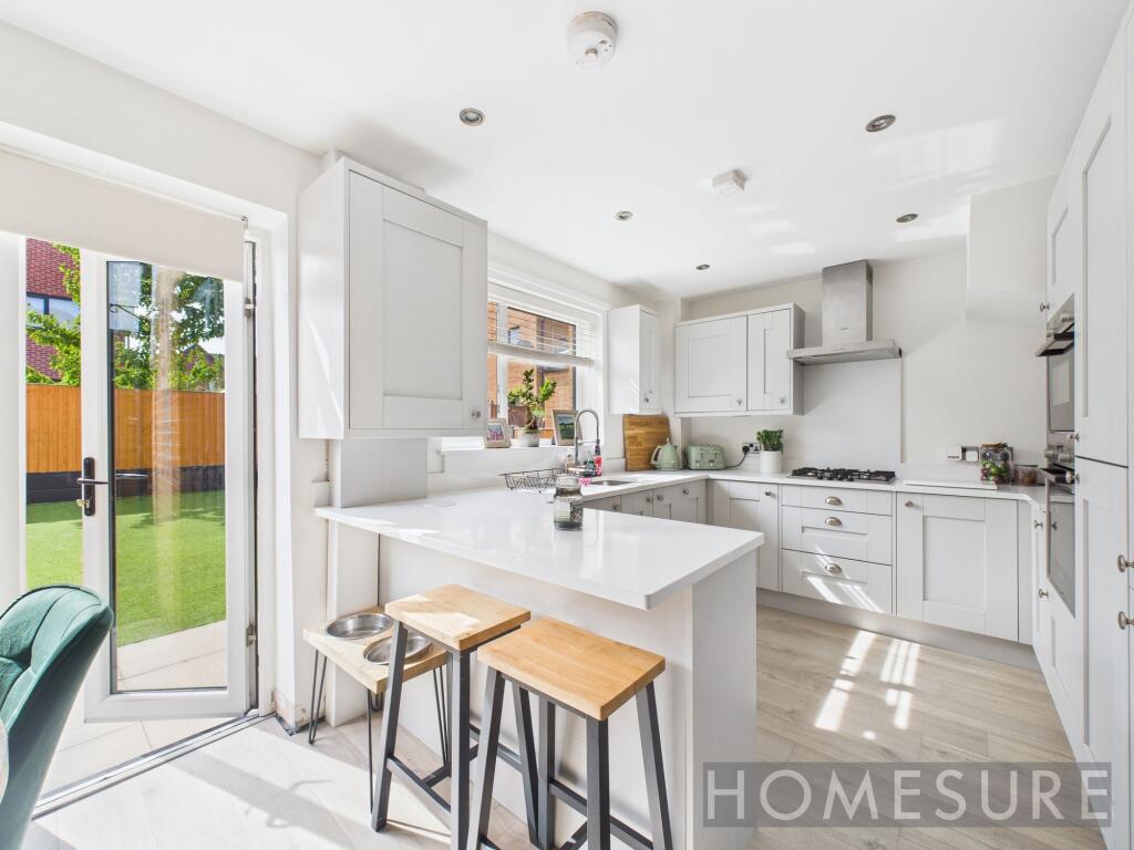 This stylish 3-bed semi boasts open plan living, modern kitchen, spacious bedrooms, chic bathroom, landscaped garden w/ patio, shed, parking. Ideal for modern families & professionals.