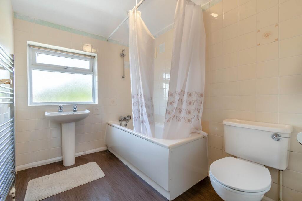 The property itself appears to be in relatively good condition, although some modernisation may be desirable to enhance its appeal. The interior is presented neutrally, with updated flooring and some cosmetic improvements. The kitchen and bathroom appear dated but functional. The garden is a decent size and offers potential for further landscaping. There is also a shed visible in the garden photos.
