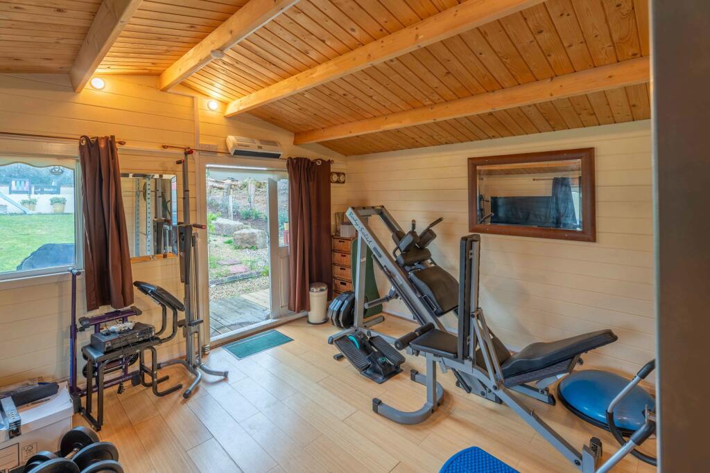 The property is located in Queens Gardens, Magor, a village in Monmouthshire, Wales. Based on the provided information and images, the property appears to be a five-bedroom house with two bathrooms, situated on a plot of approximately 2,389 square feet. The house includes a detached log cabin which is currently used as a gym. There is also a sizeable garden visible in the provided photos. The property is within reasonable proximity to Magor V.A. Primary School (0.85 KM) and several other schools further afield. Train stations are also within a reasonable distance, at Severn Tunnel Junction (6.52 KM) and Caldicot (8.43 KM).