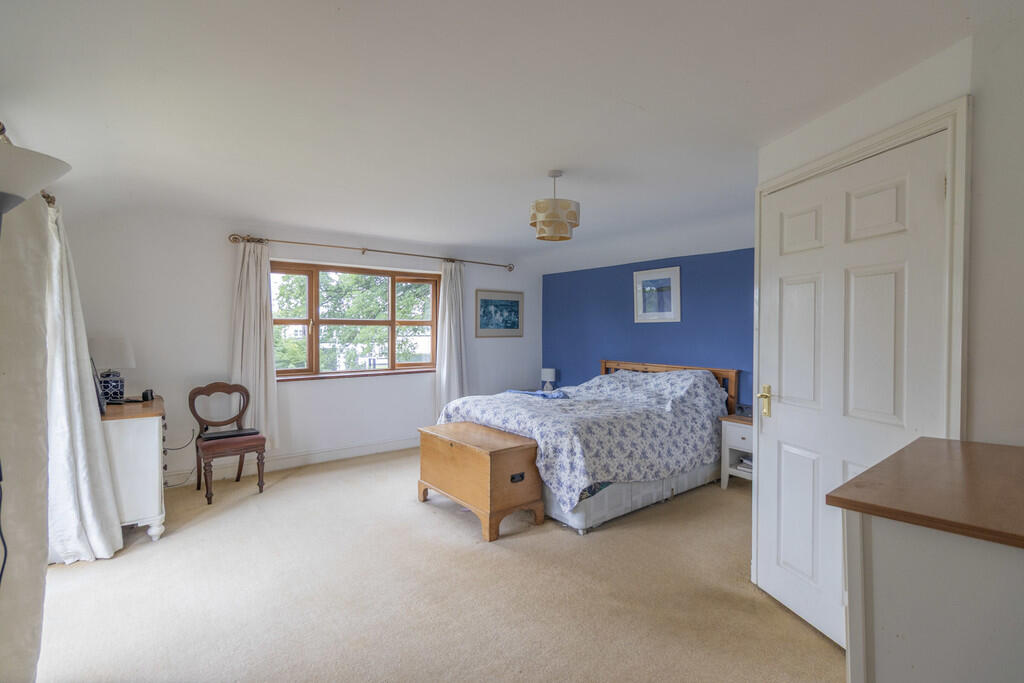Spacious home with good living space. Integral garage and large detached garage with studio room above. Four bed, two en-suite, including master with balcony, en-suite and dressing room. Two reception rooms and large conservatory. Pleasant garden and ample parking.
