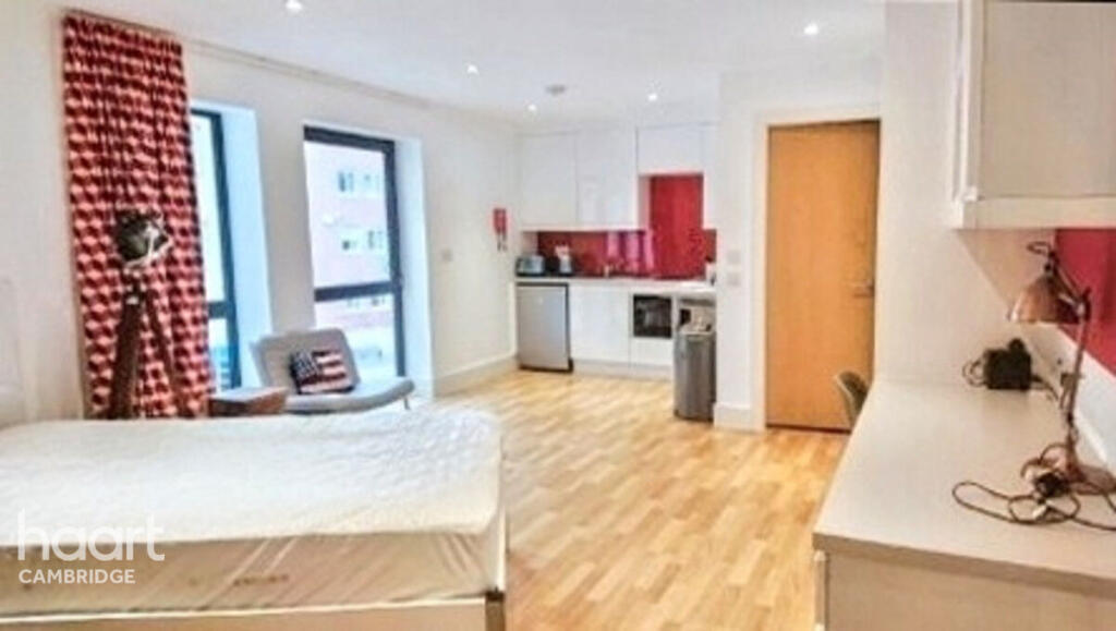 This listing is for a studio apartment located on East Road in Cambridge. The property, marketed by haart Cambridge, is presented as a modern and well-maintained apartment. Images show a contemporary design, integrated kitchen appliances, and a clean, well-lit space. The building itself looks modern. In addition to the apartment, residents have access to communal facilities, including a laundry room and bicycle storage. There is also access to communal outdoor space. The location is in close proximity to Anglia Ruskin University and the University of Cambridge, making it ideally suited for students. However, it is important to note that the listing lacks detailed information on the overall building condition and the precise nature of the surrounding area, including views. The price of £175,000 is relatively higher than nearby comparable studios but might be justified by the larger size of this property (1876 sq ft) and the presence of modern amenities; detailed comparable property information would help in forming a definitive opinion on whether the property presents good value for money.