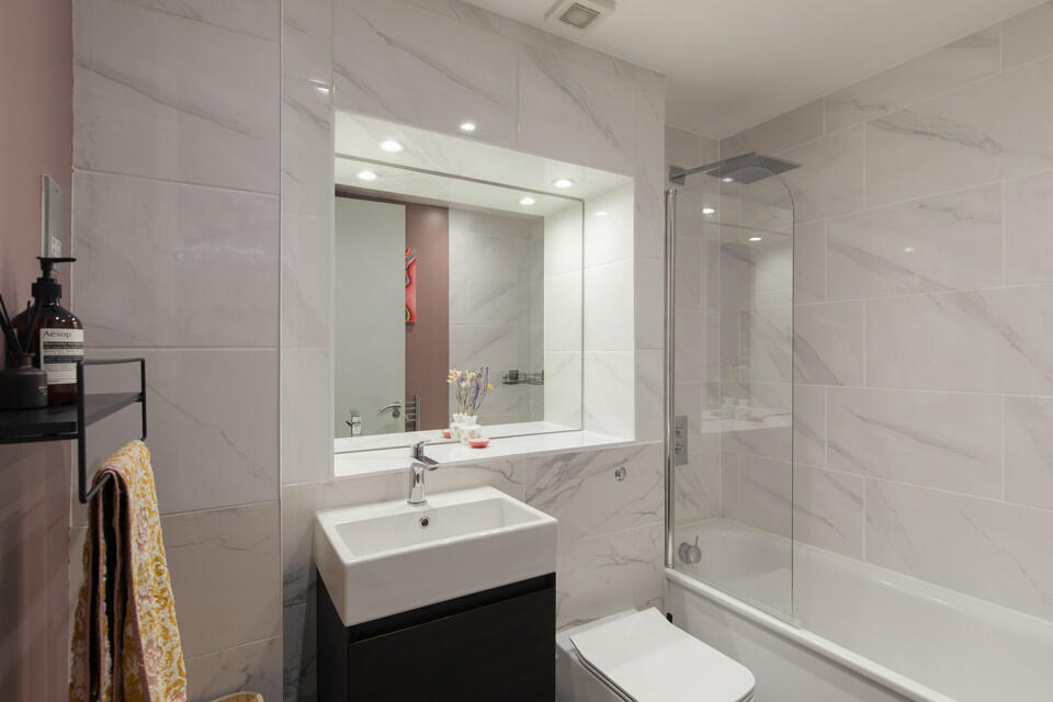 This is a two-bedroom apartment located in Peckham, London. The property is listed for £450,000. The apartment is in good condition and features modern fixtures and fittings. The location is convenient, with good transport links and proximity to local amenities. The price per square foot is below the local average, making it a potentially attractive purchase.