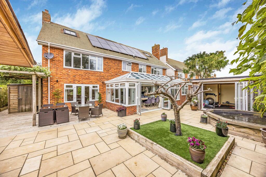 This five-bedroom, three-bathroom detached house located in Royce Way, West Wittering, boasts a prime location in a highly sought-after coastal village. The property is presented in excellent condition, featuring a modern interior design with recently updated kitchen, bathrooms, and living areas. The well-maintained interior is highlighted by tasteful décor and fixtures. The exterior also presents well with a sizable garden providing various outdoor spaces, including a patio, decking, a pond, and an equipped gym/outbuilding. The proximity to West Wittering’s sandy beach, local schools, and village amenities adds to the property’s appeal. While the precise plot size isn’t provided, visual evidence suggests the garden is more substantial than many properties in the area. The location in West Wittering contributes significantly to the overall value, as the village is known for its affluent nature and high demand for properties. Train stations are within a reasonable driving distance for commuters, while various watersports are available within easy reach of the property. The property offers a desirable lifestyle to families or individuals seeking a coastal home with modern amenities in a high-demand location. A full professional survey would be required to identify any potential issues not visible in the photographs.