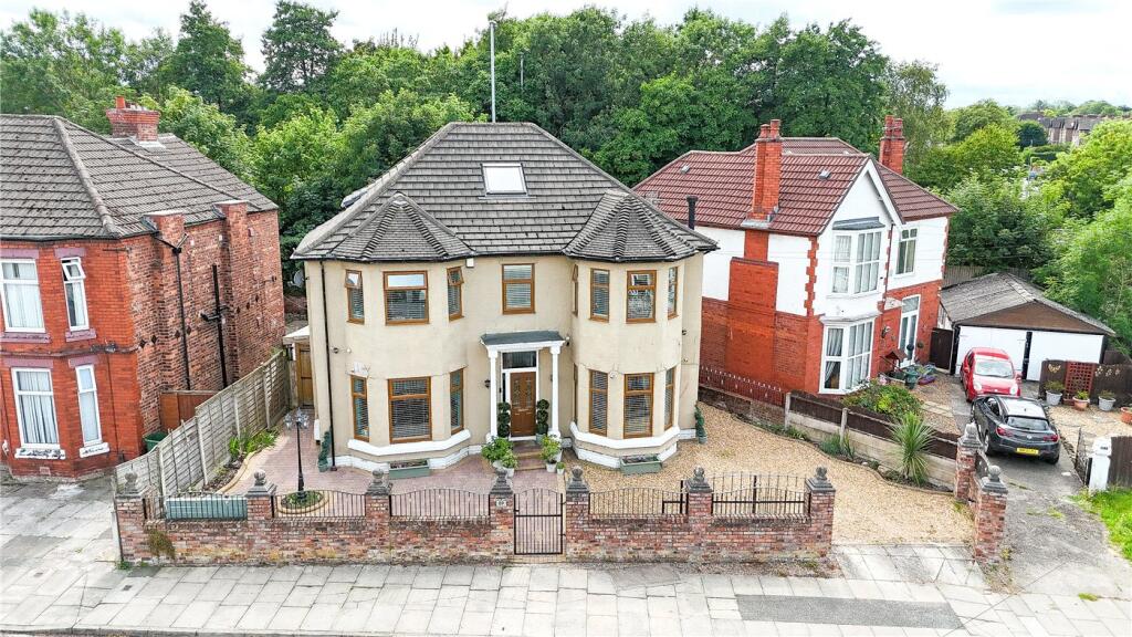 Immaculate four-bedroom detached home in New Ferry, just minutes from the waterfront. Features include spacious bay-fronted rooms, open-plan kitchen, versatile loft room, modern bathroom, off-road parking with sliding gates, and a low-maintenance rear garden with patio and artificial lawn.