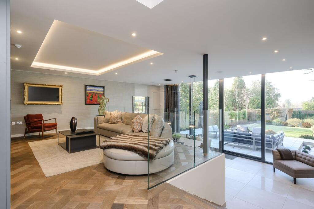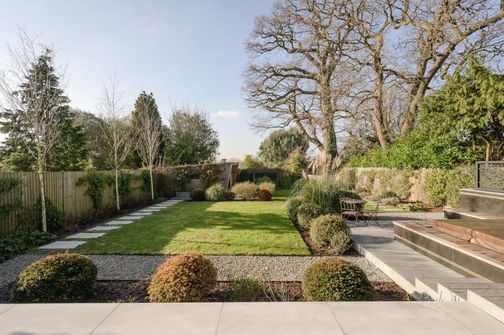 This property presents a stunning example of modern luxury living in the highly sought-after area of Stoke D’Abernon, Cobham. The contemporary design is evident both inside and out, featuring high-quality materials and finishes throughout. The spacious layout includes five bedrooms and four bathrooms, catering to a large family. The open-plan living area seamlessly connects to the beautifully landscaped garden, which boasts a substantial patio, pergola, and various outbuildings including a home gym and a studio. The property’s proximity to Cobham & Stoke D’Abernon station offers convenient access to London Waterloo, while its location within a desirable school catchment area adds significant appeal to families. The overall presentation of the property is impeccable, reflecting a high level of investment and attention to detail. The absence of precise plot size data limits a conclusive assessment of value per square foot, but the property’s features and location strongly suggest it’s a premium offering within the market. Buyers seeking a luxurious, modern home in a prime location with excellent amenities will find this property highly attractive.