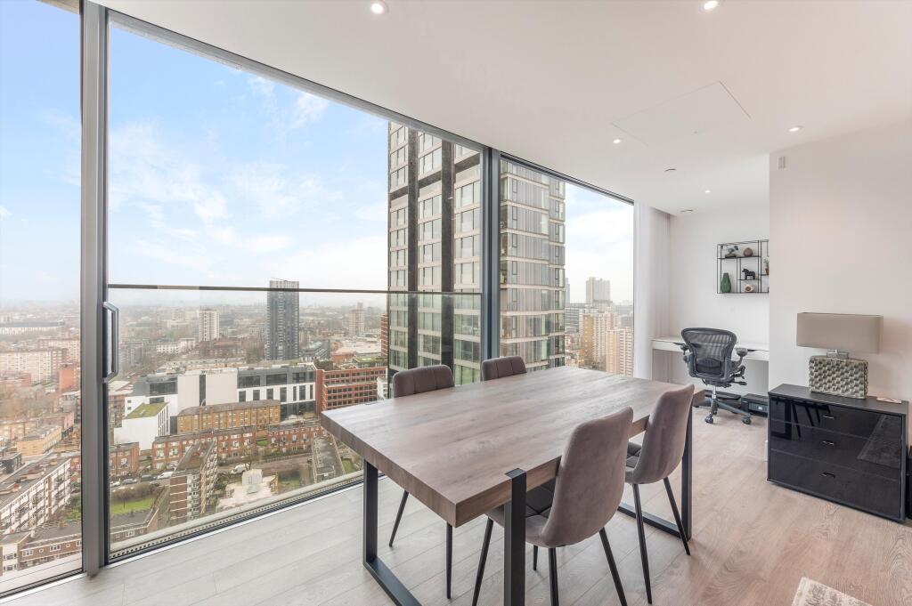 Bollinder Place is a modern apartment located in the Bunhill area of Islington, London. The property benefits from an excellent location, with nearby transportation links including Old Street station (0.98km) and numerous bus routes. There are also several highly-rated primary schools within a short distance, such as Moreland Primary School (0.30km) and Hanover Primary School (0.46km). The apartment itself is in excellent condition, boasting a contemporary design and high-quality finishes. It features two bedrooms and two bathrooms, and the images show a spacious and well-lit living area with floor-to-ceiling windows offering stunning city views. The lack of plot size suggests this is an apartment within a larger development. The list price of £1,250,000 seems reasonable considering the property’s location, condition, and amenities. The average price for flats in the area is £1,044,220, and the average price per sqft is £1,127. While the provided sqft for this property is £1,060, the lack of plot size for nearby properties makes a precise comparison difficult. However, considering the modern finishes, city views, and amenities, the price is likely justified.