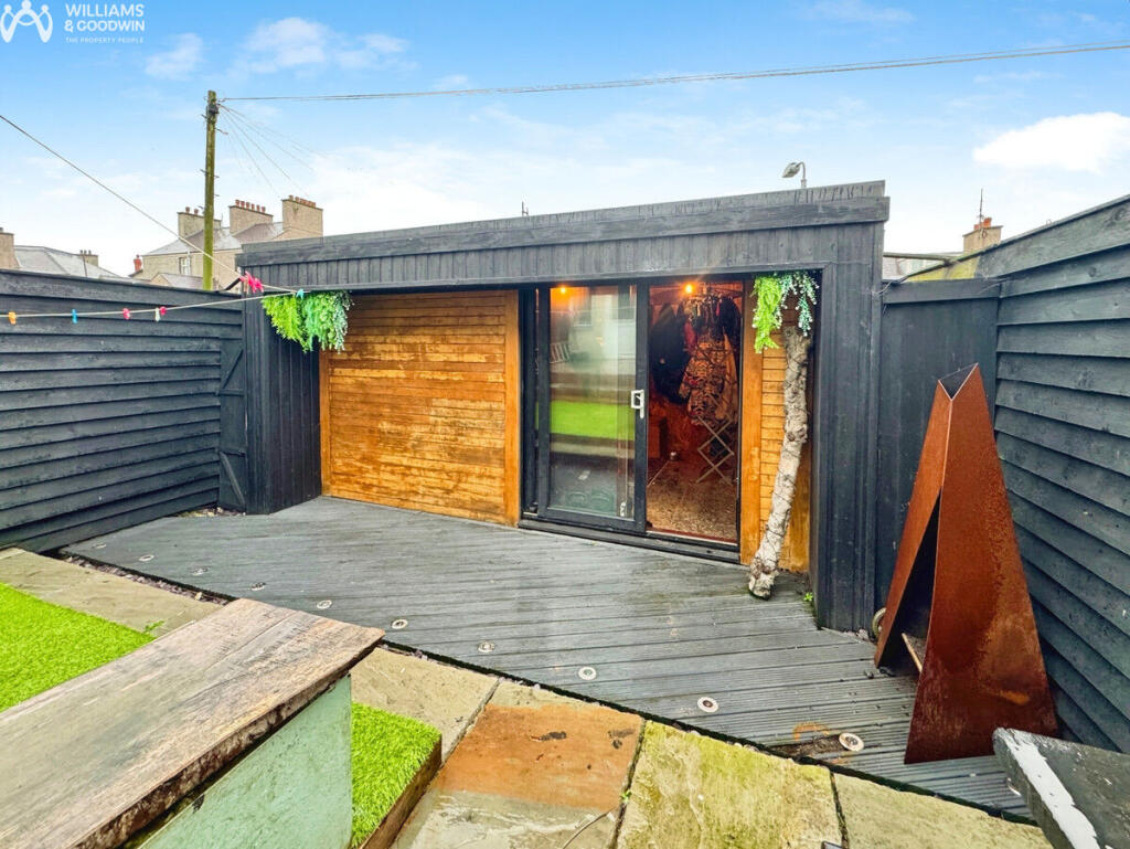 This is a three-bedroom terraced house in Holyhead, Isle of Anglesey. The property appears to be in generally good condition, with a modern kitchen and bathroom. It benefits from both front and back gardens, with the back garden featuring a converted shed used as a gym. The property is located within a reasonable distance of local schools and transportation links, including the Holyhead train station. The asking price of £139,950 seems reasonable, especially when compared to the average price per square foot in the area.