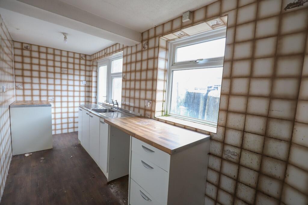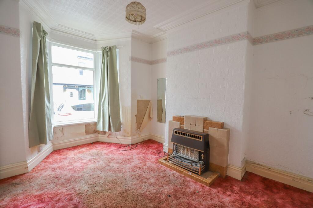 This property is a terraced house located in Heysham, Morecambe. It is a 2 bedroom property with a list price of £129,950. The property is in need of significant renovation, as evidenced by the photos. The average price for a property in the area is £189,726, and the average price per square foot is £231. This property is significantly below the average price, however, this is likely due to its condition. The location is close to several schools and transportation links, making it a potentially desirable location for families. There is no garden.