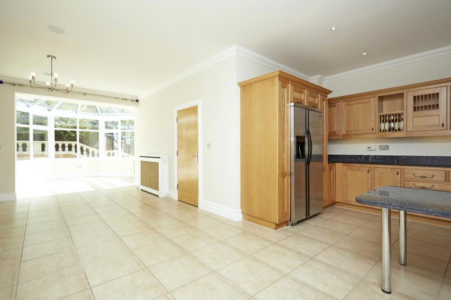 Available first week in July! A particularly spacious family home of 5,473 sq ft (508 m2) situated at the end of a quiet cul-de-sac behind electric gates. Grand entrance hall, Dining room, Drawing room, excellent kitchen/breakfast area opening to a conservatory garden room with doors to the expa...