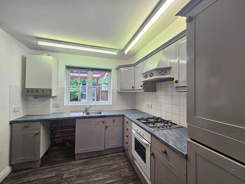 Well-presented two-bedroom home featuring a large living room, downstairs toilet, two double bedrooms, upstairs bathroom, enclosed garden, and private gated parking for two cars.