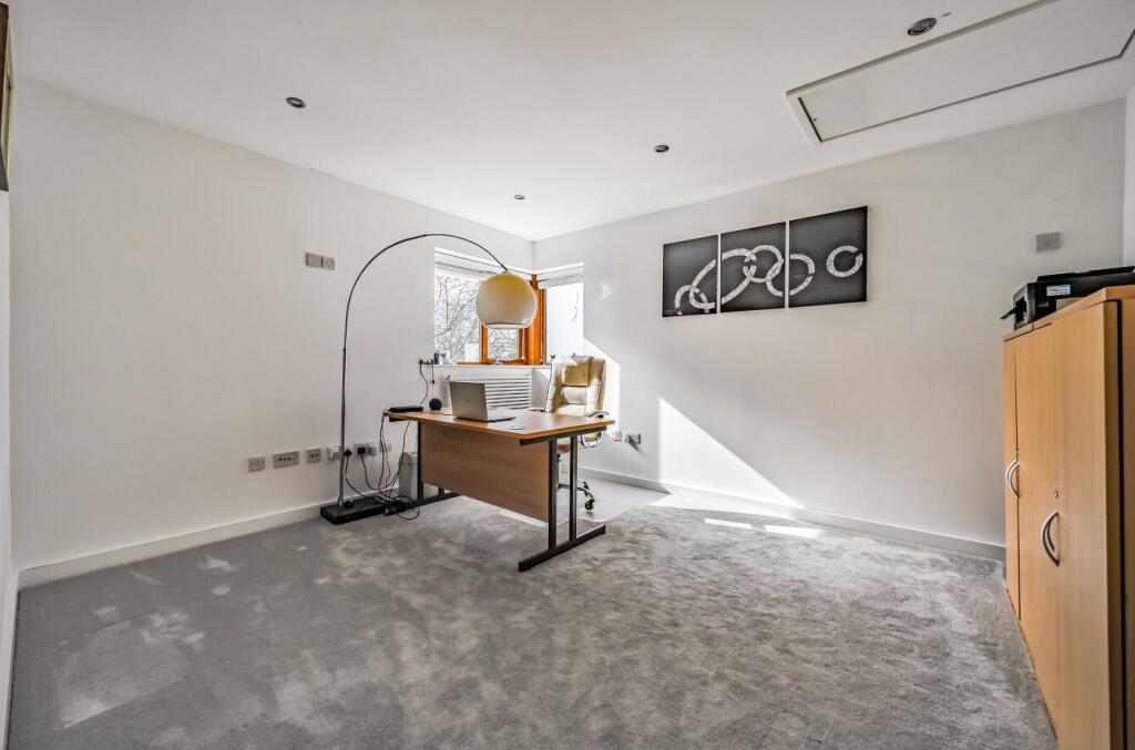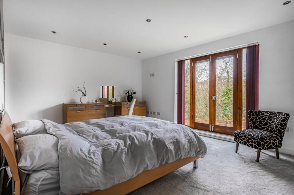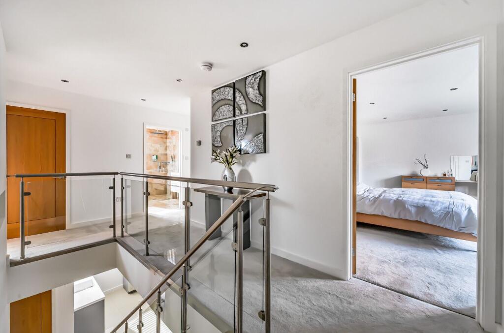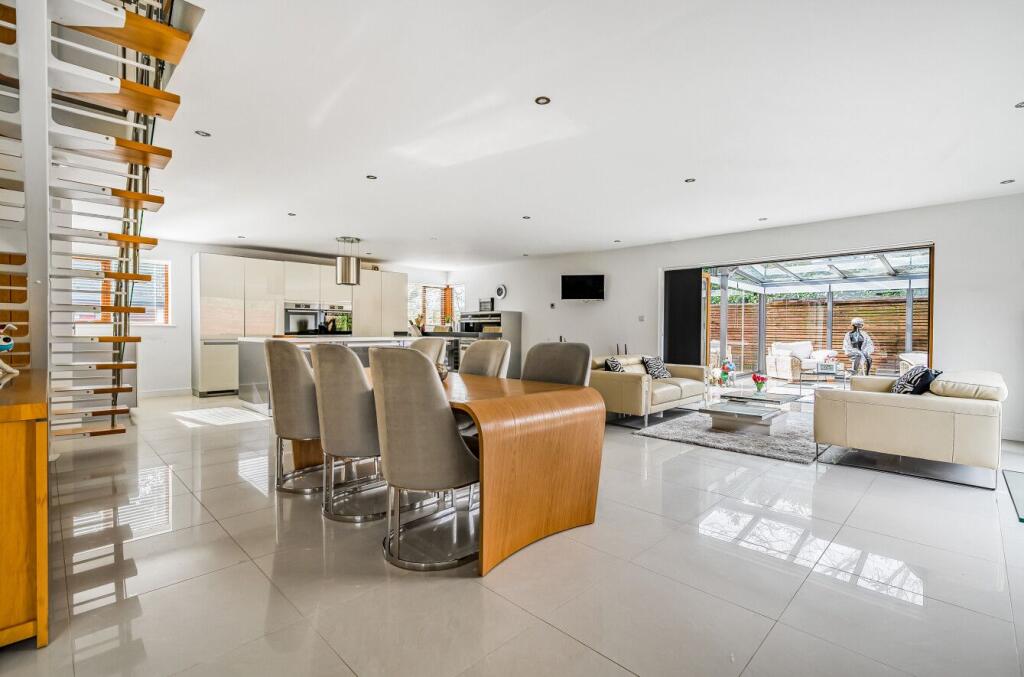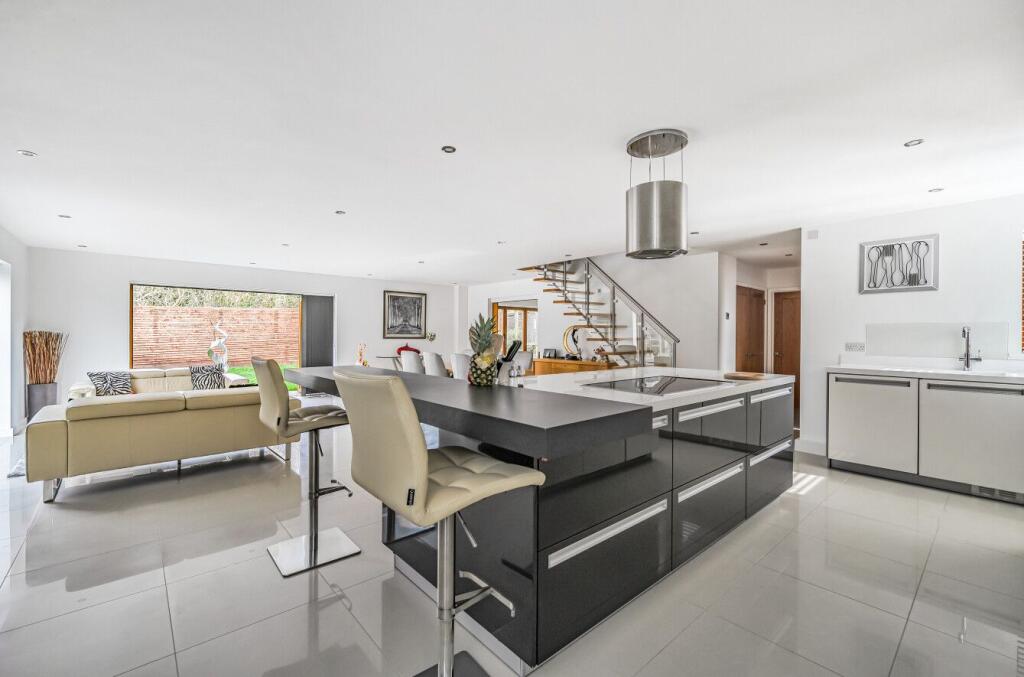 The Mill is a contemporary, light-filled home in the peaceful hamlet of Little London, surrounded by Hampshire countryside. The open-plan ground floor features underfloor heating, a modern grey and white kitchen with integrated appliances, and spacious dining and seating areas that open to the...