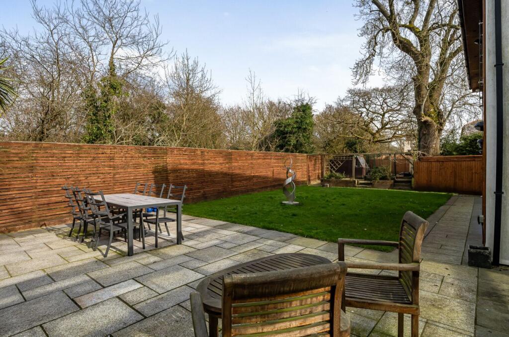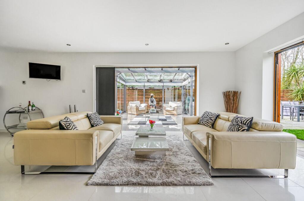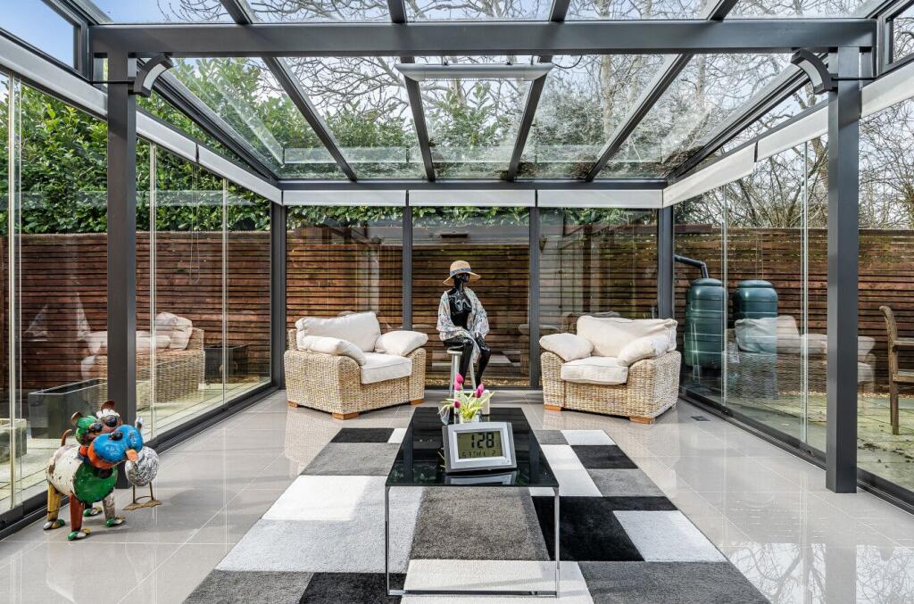 The property includes features such as a garage, a patio, and a conservatory, adding to its overall appeal and potential value.