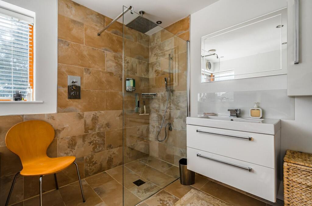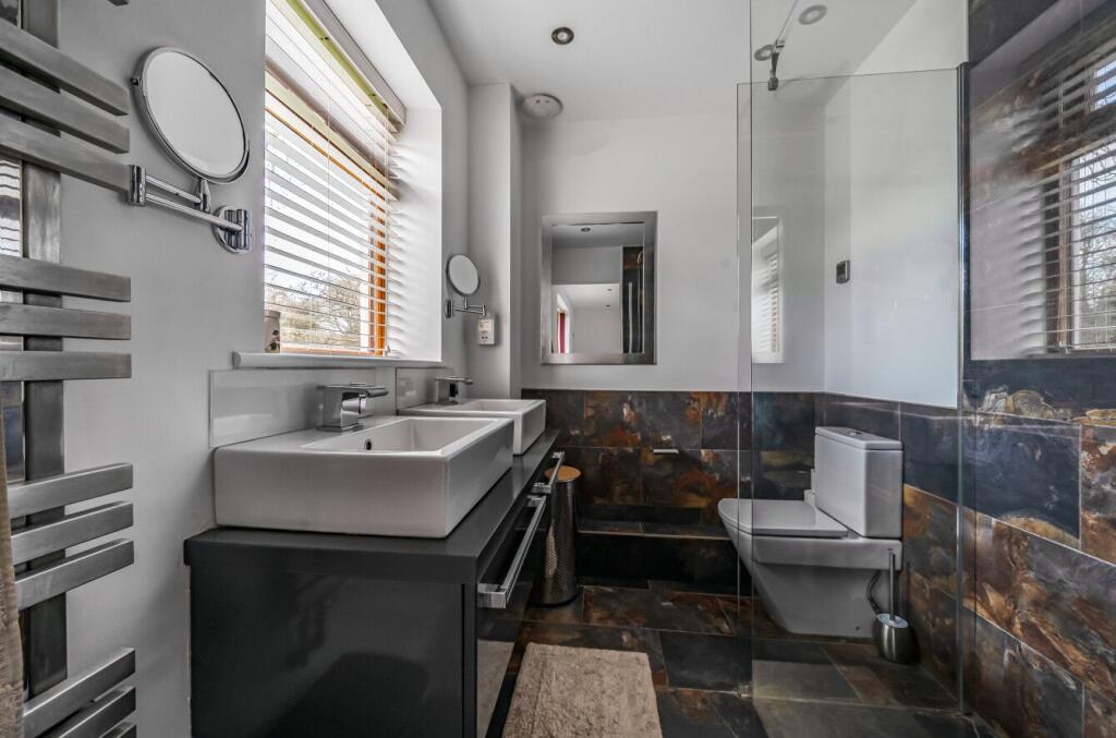Based on the provided images, the property appears to be in excellent condition. It is modern, well-maintained, and features a contemporary design and high-quality finishes throughout. The kitchen and bathrooms are particularly impressive, showcasing modern appliances and fixtures. The property also benefits from a substantial garden, offering ample outdoor space.