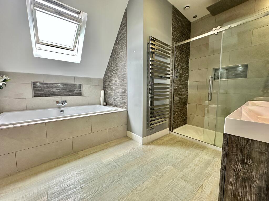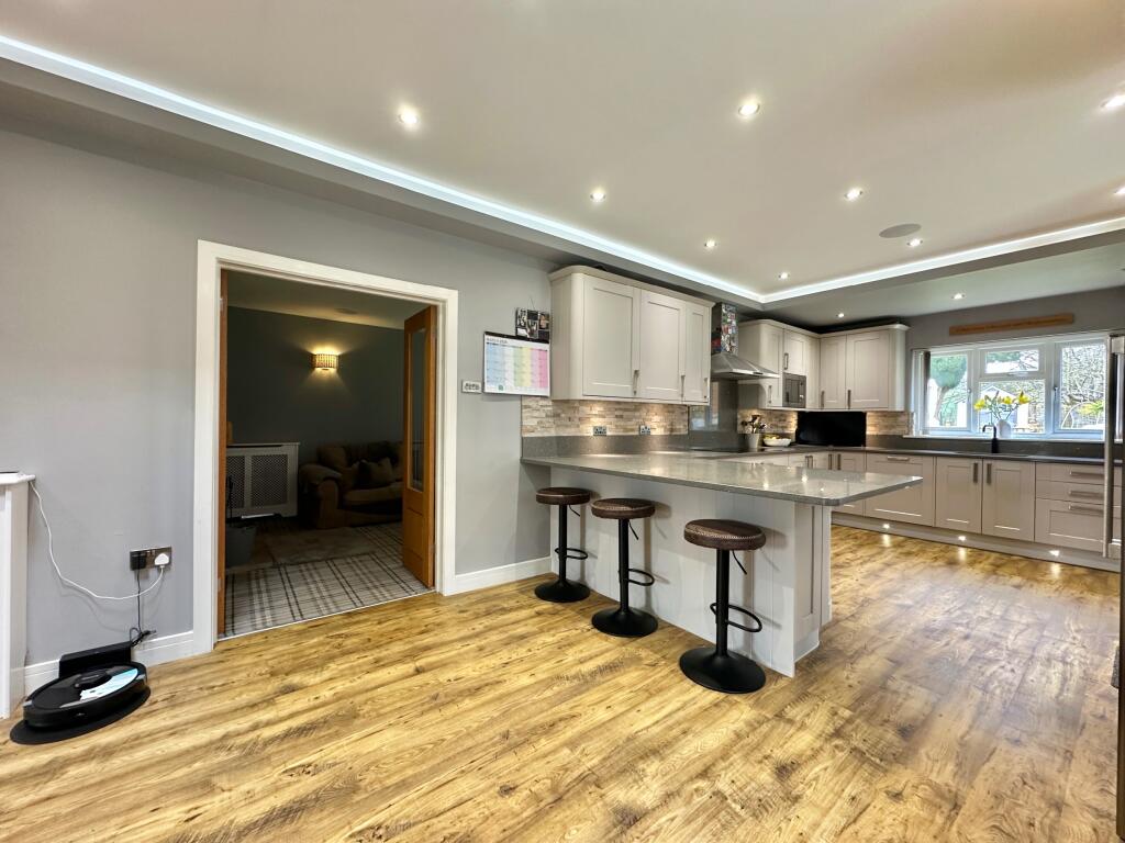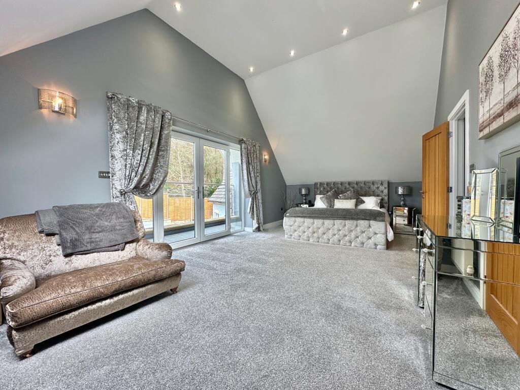 A light and spacious four bedroom property benefitting from having a detached double garage with a one bedroom annexe above, large driveway for vehicle parking, and enclosed gardens to rear with hot tub and beautiful woodland views, situated in an ideal location close to local amenities.