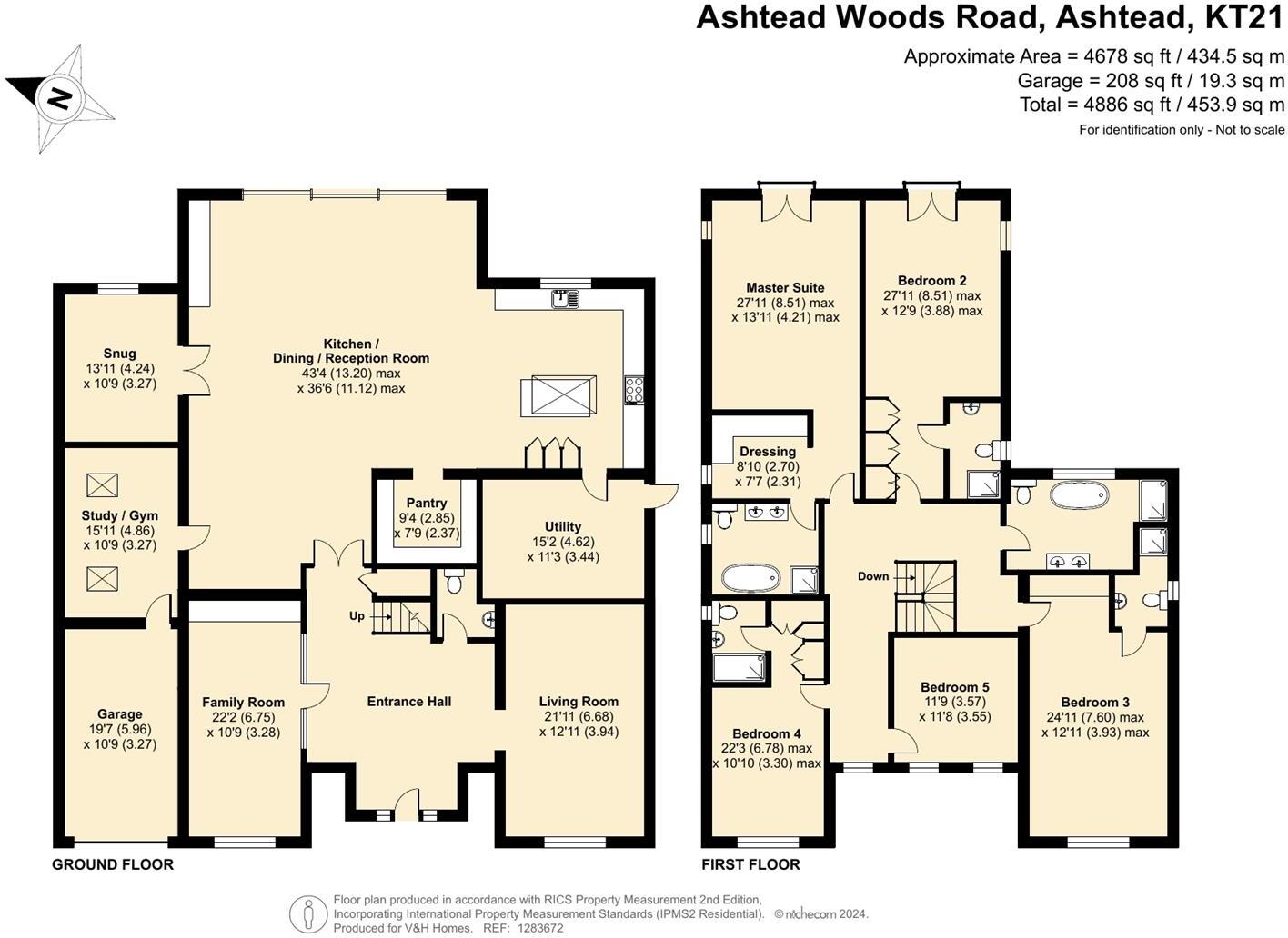 The property is located in Ashtead, Surrey, a desirable area known for its good schools and transport links. The property itself is a newly built, modern detached house with a large plot size of 4,678 sqft. It boasts 5 bedrooms and 5 bathrooms, making it suitable for a large family. The images show a high-quality finish and modern design. The list price of £2,700,000 is significantly higher than the average house price in the area (£752,727), but given the size, location, and modern condition of the property, it may be justified. More information on comparable properties and the local market would be needed to determine if the price is truly reflective of the market value.