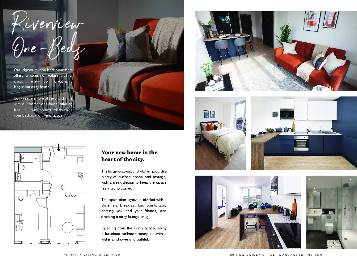 Pet Friendly apartment | Freedom to decorate | Spacious, furnished 1 bed | Affinity Living Riverview | 24th Floor | Resident's gym | Co-working space | On-site Loaf cafe | Waterfront location | A stone's throw from Spinningfields | 24/7 concierge | Furnished | Free weekly events | Community feel
