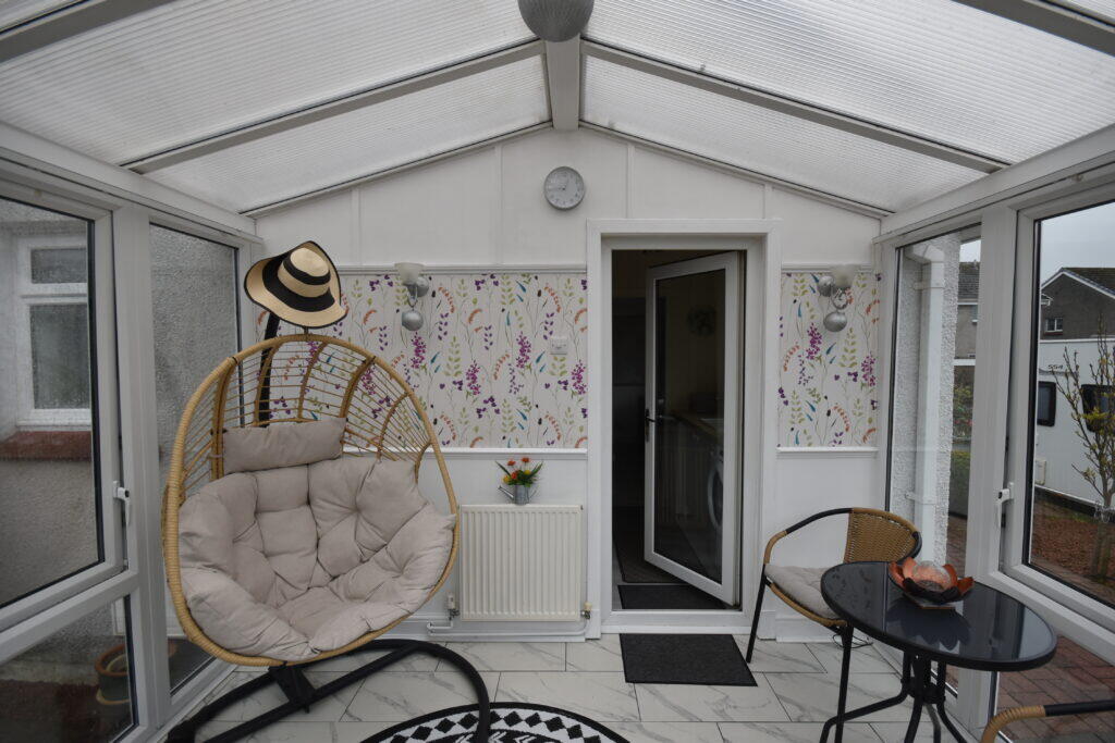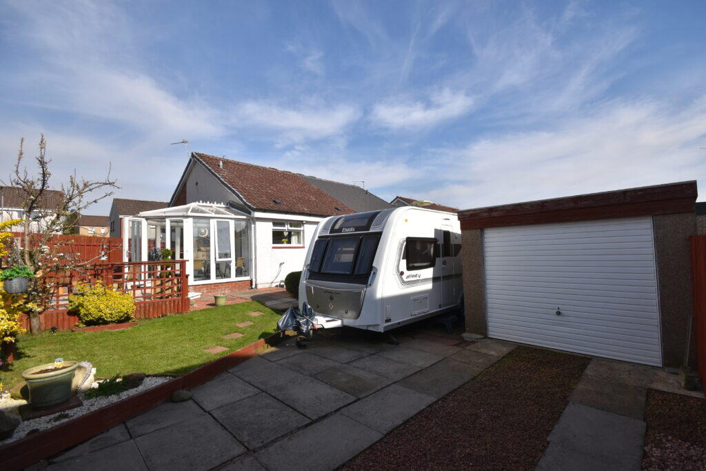 This is a well-presented two-bedroom semi-detached bungalow in Carluke. The property features a conservatory, a detached garage, and a well-maintained garden. While the interior might benefit from some modernisation, it appears to be in good condition overall. The property’s proximity to local transportation and amenities makes it a desirable location. The price per square foot is notably lower than the area average, indicating good value for potential buyers. The inclusion of a garage and conservatory adds further appeal.