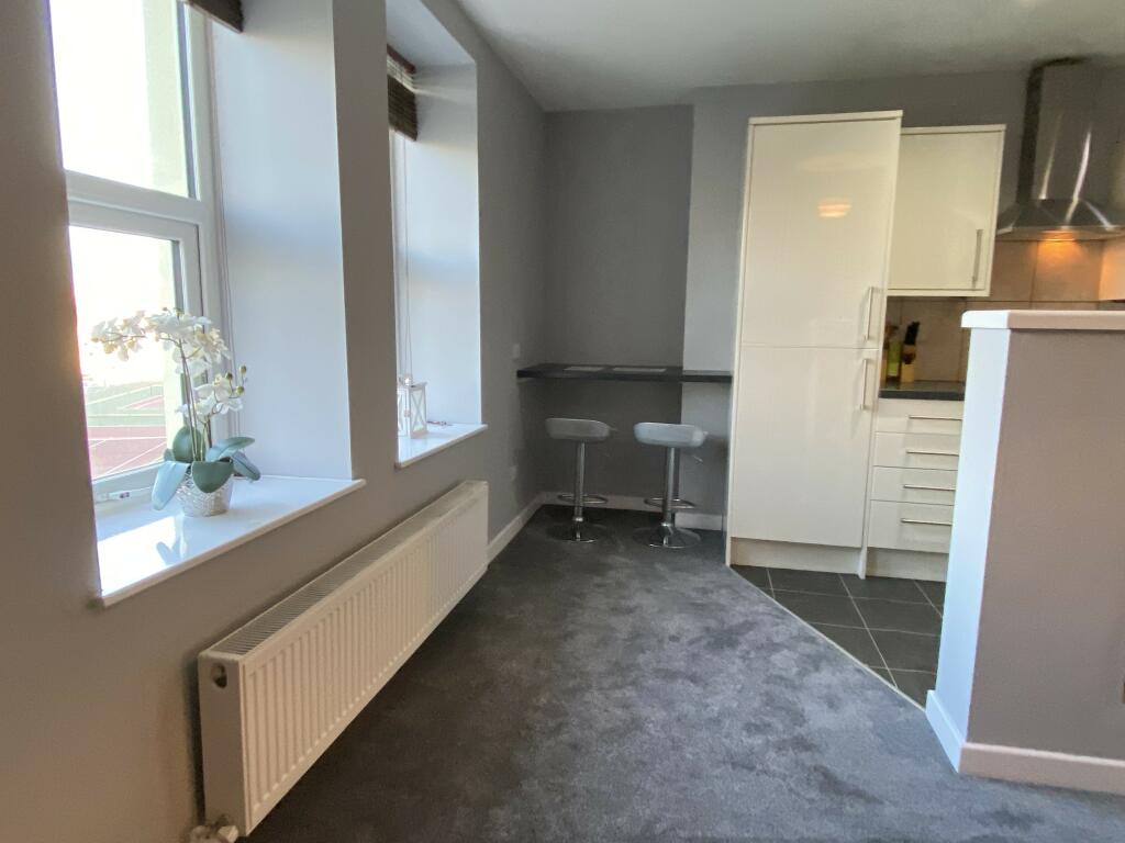 Spacious and modern one bedroom flat on 2nd floor. Open plan living area and kitchen, complete with modern fittings and fixtures. Contemporary shower room, and double bedroom.