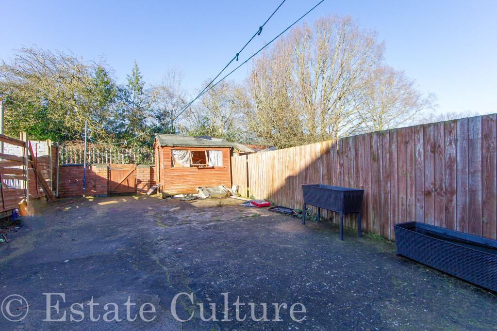 The property boasts a small, paved rear garden with a shed, providing some outdoor space, but it’s not extensive.