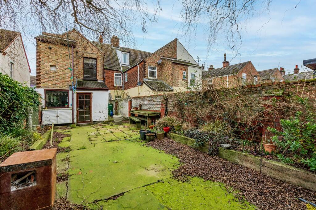 This property is a 4-bedroom mid-terraced house located on Lichfield Road in Great Yarmouth, Norfolk. The property is listed at £180,000 and has 1776 sqft of living space. The average price for similar properties in the area is £162,905, with an average price per sqft of £209. The property benefits from being close to local amenities and transportation links, such as Great Yarmouth train station (1.04km). However, nearby schools have mixed Ofsted ratings, with Edward Worlledge Ormiston Academy requiring improvement. The property itself appears to be in need of significant modernisation and renovation, as evidenced in the photos. The garden is present but requires attention. Given the condition, the price seems slightly high compared to the average for the area, although comparable properties on the same street are listed at similar prices.