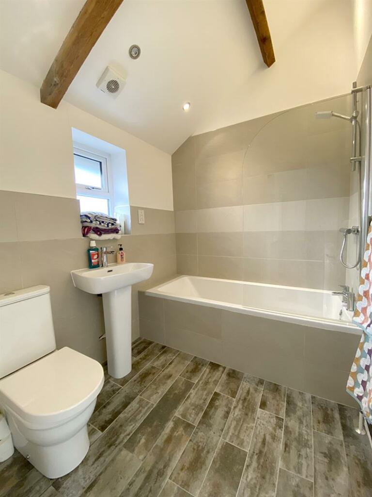 This two-bedroom, two-bathroom cottage in Dacre Banks, Harrogate, is presented as a beautifully presented and recently modernised property. The listing highlights its central village location, overlooking the village green and close to essential amenities including a village store, church, medical centre, and public house. The interior photos showcase a recently updated kitchen and bathrooms with modern fittings and finishes. The living areas are bright and appear spacious, with hardwood flooring adding a touch of elegance. The bedrooms, located on the upper floor, feature exposed beams suggesting character, and benefit from natural light. While the external area appears limited, the property is well-located within the village and benefits from proximity to a primary school. The absence of specific details on plot size and the limited available data on comparable properties makes an exact property valuation difficult, but overall the £295,000 asking price appears to be in line with the local market given the current state and location of the property. Potential buyers should factor in the lack of a substantial garden and investigate transportation options suitable to their individual needs.