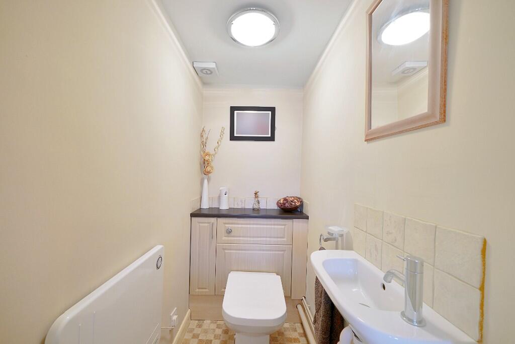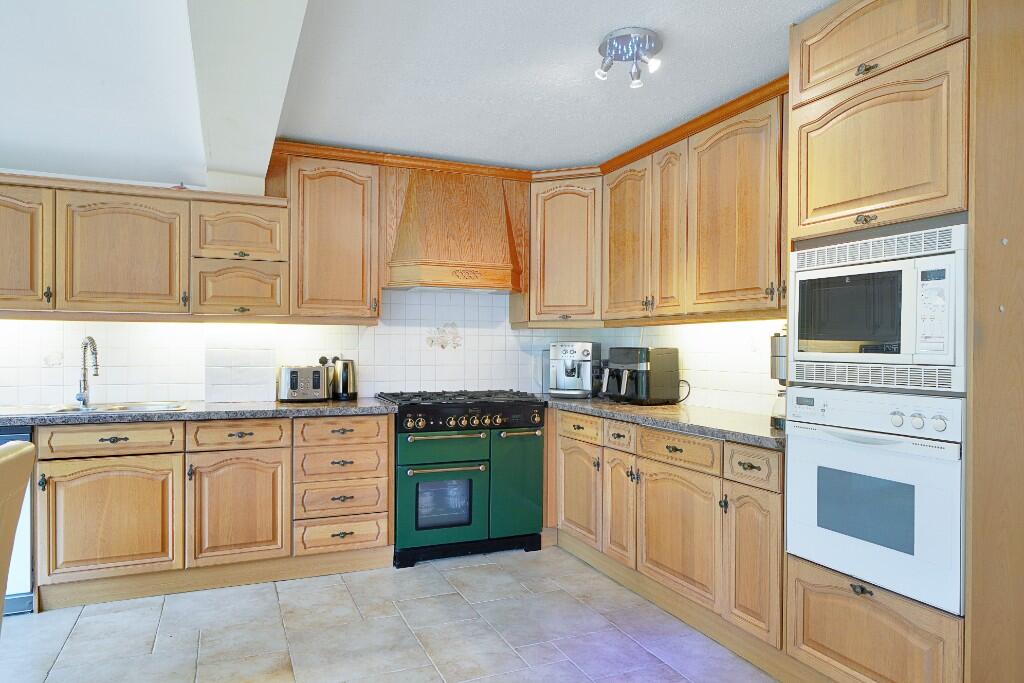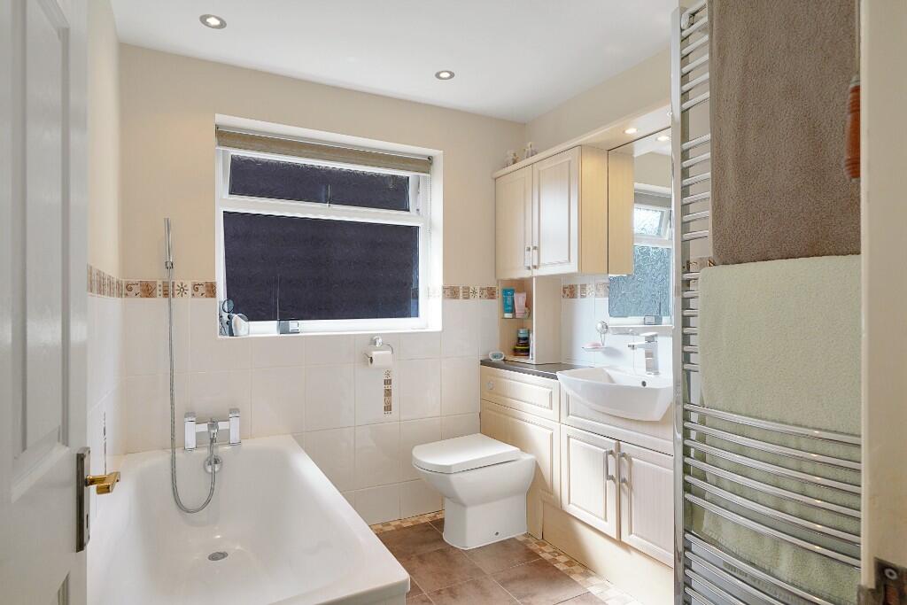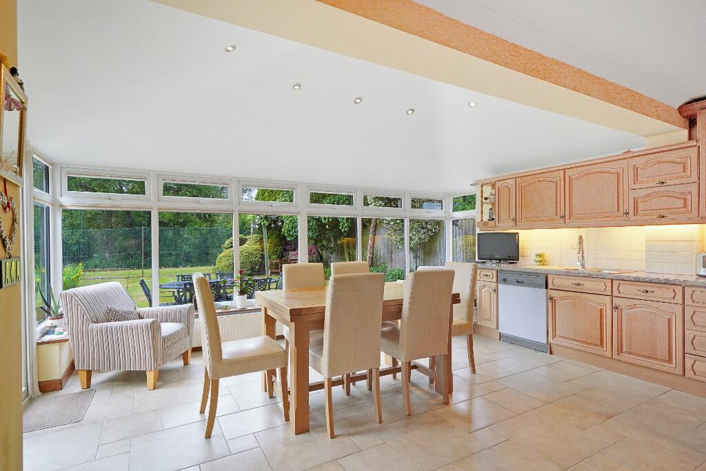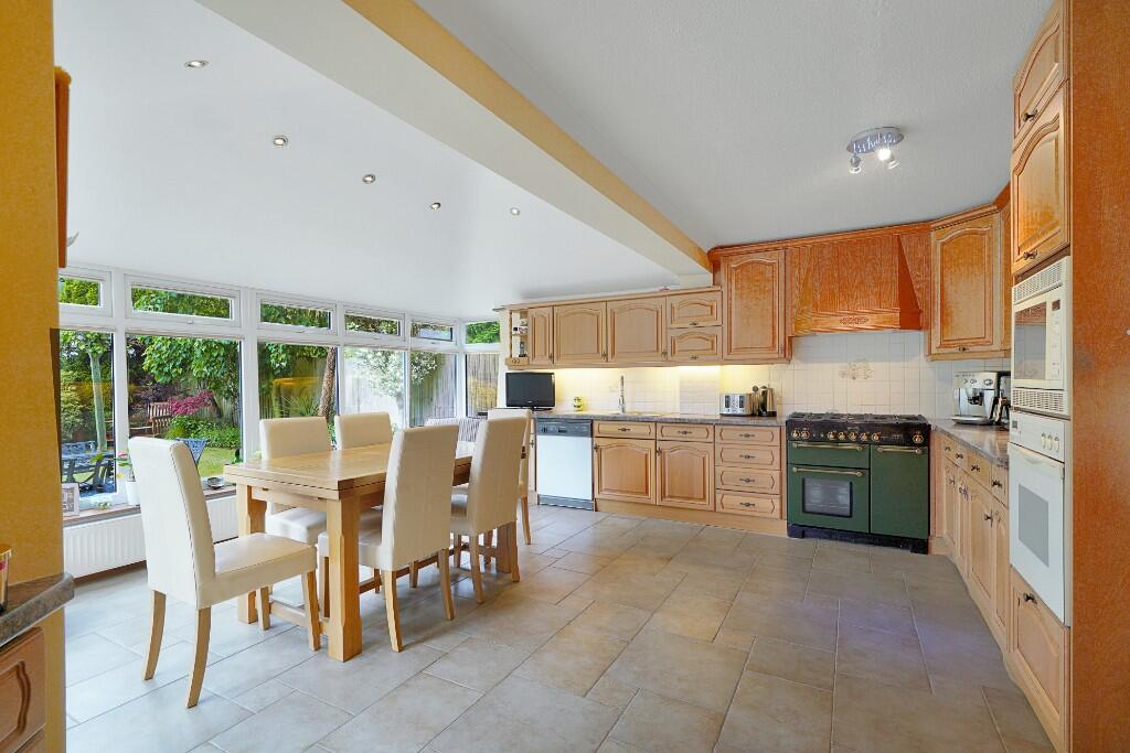Based on the provided images, the property appears to be in good condition. The interior is well-maintained and modern, with updated kitchen and bathroom fixtures. There is evidence of a recent conservatory extension. The garden is of a reasonable size and includes a patio area, ideal for outdoor entertaining. The lawn appears to be in need of some maintenance.