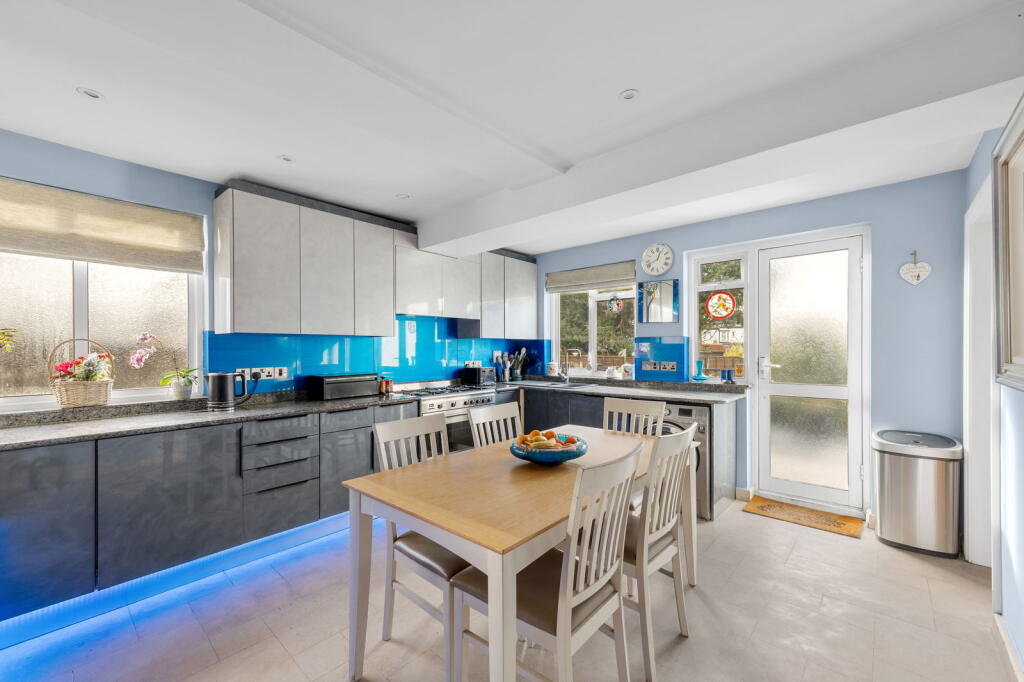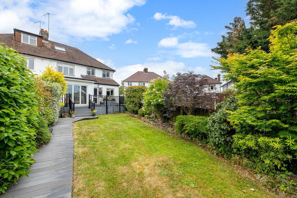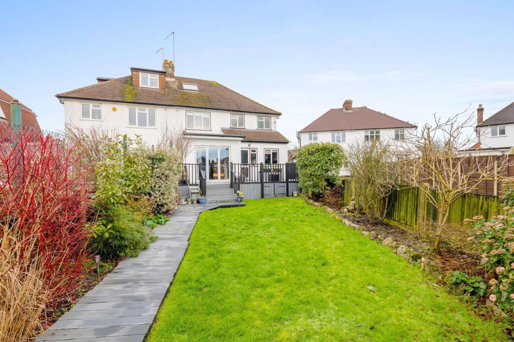 This four-bedroom, three-bathroom semi-detached house in Stoneleigh, Surrey, presents a comfortable family home. The property is situated in a desirable area known for its good schools and convenient access to Stoneleigh train station.