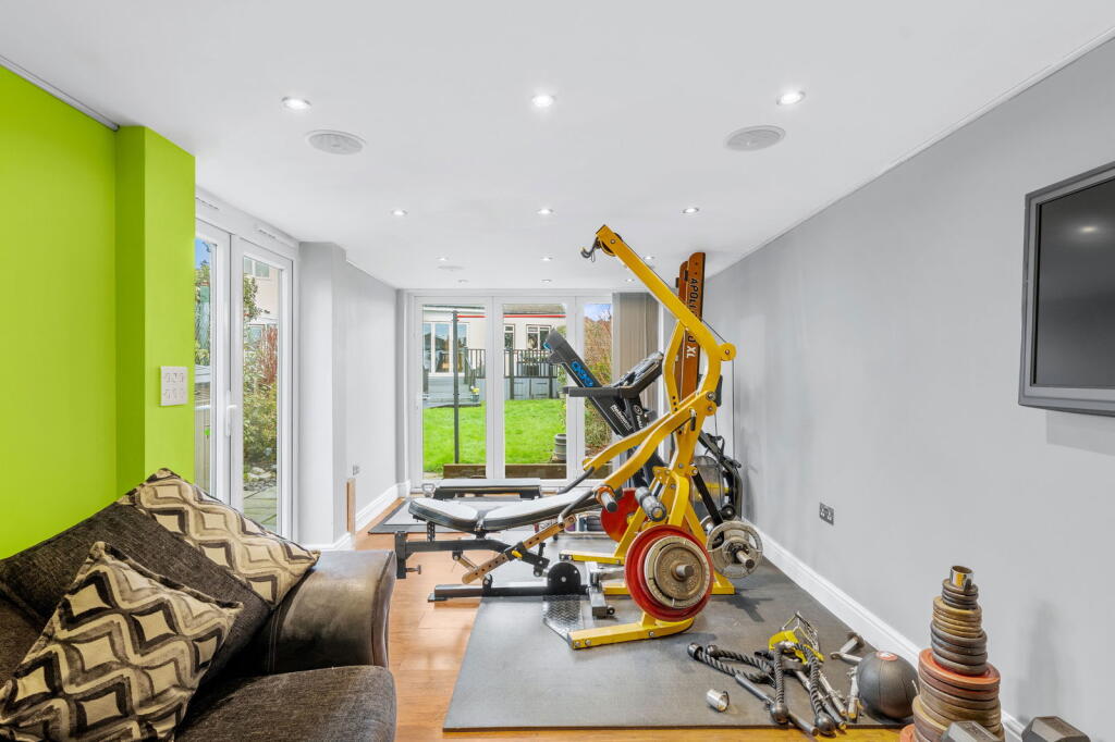 The property has a sizeable, well-maintained garden area, which also includes a recently built separate gym.