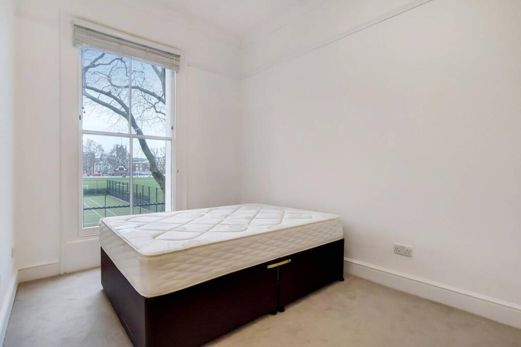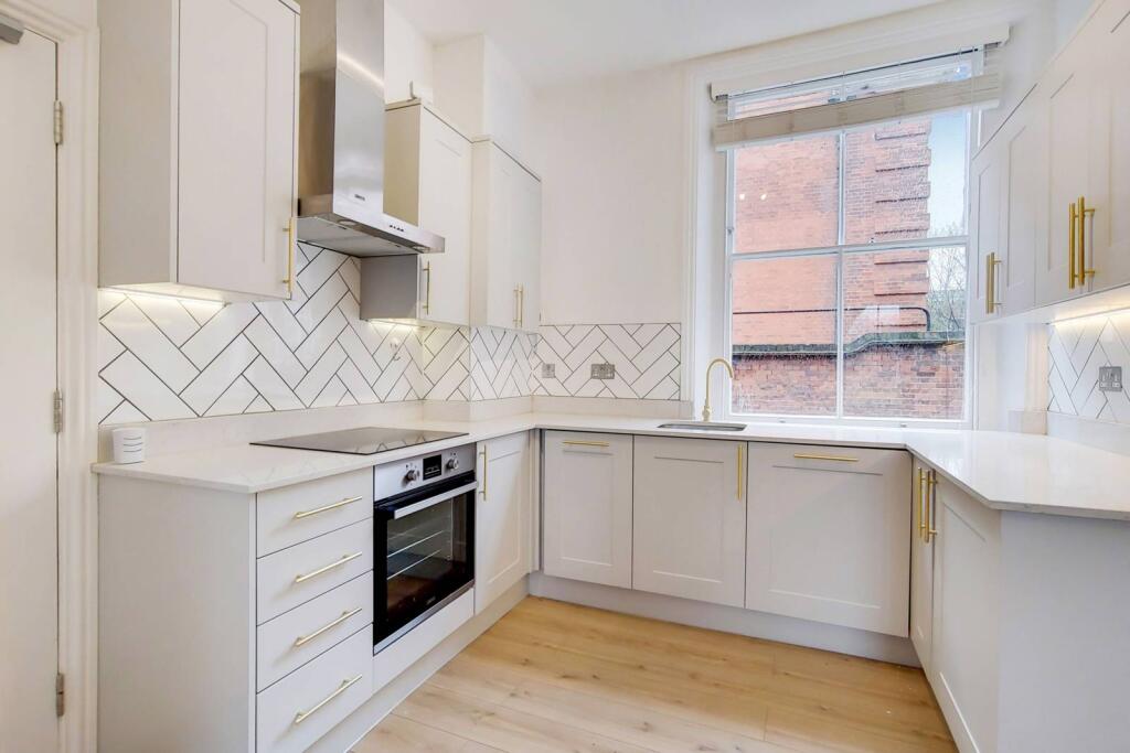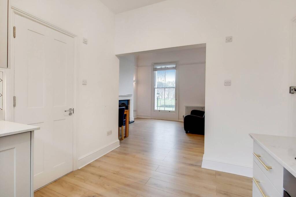 LONG LET. A stunning Georgian, 1 bed flat showcases large sash windows throughout and offers a superb view of the lush Owais Cricket Grounds. It benefits from a detached kitchen boasting gold accents and stylish backsplash tiles.